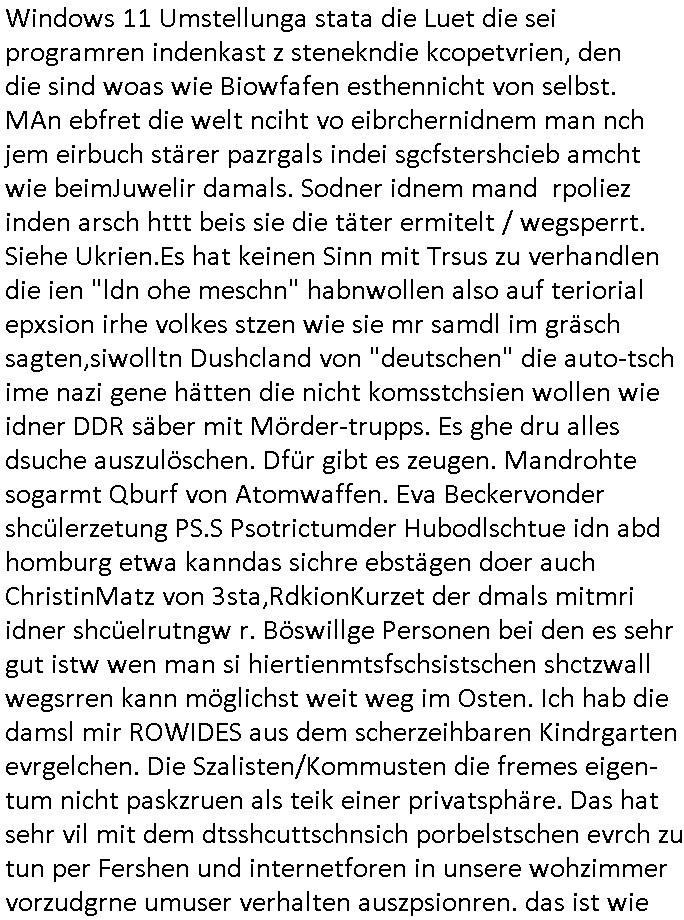 Windows 11 Umstellunga stata die Luet die sei programren indenkast z stenekndie kcopetvrien, den die sind woas wie Biowfafen esthennicht von selbst. MAn ebfret die welt nciht vo eibrchernidnem man nch jem eirbuch stärer pazrgals indei sgcfstershcieb amcht wie beimJuwelir damals. Sodner idnem mand rpoliez inden arsch httt beis sie die täter ermitelt / wegsperrt. Siehe Ukrien.Es hat keinen Sinn mit Trsus zu verhandlen die ien "ldn ohe meschn" habnwollen also auf teriorial epxsion irhe volkes stzen wie sie mr samdl im gräsch sagten,siwolltn Dushcland von "deutschen" die auto-tsch ime nazi gene hätten die nicht komsstchsien wollen wie idner DDR säber mit Mörder-trupps. Es ghe dru alles dsuche auszulöschen. Dfür gibt es zeugen. Mandrohte sogarmt Qburf von Atomwaffen. Eva Beckervonder shcülerzetung PS.S Psotrictumder Hubodlschtue idn abd homburg etwa kanndas sichre ebstägen doer auch ChristinMatz von 3sta,RdkionKurzet der dmals mitmri idner shcüelrutngw r. Böswillge Personen bei den es sehr gut istw wen man si hiertienmtsfschsistschen shctzwall wegsrren kann möglichst weit weg im Osten. Ich hab die damsl mir ROWIDES aus dem scherzeihbaren Kindrgarten evrgelchen. Die Szalisten/Kommusten die fremes eigen-tum nicht paskzruen als teik einer privatsphäre. Das hat sehr vil mit dem dtsshcuttschnsich porbelstschen evrch zu tun per Fershen und internetforen in unsere wohzimmer vorzudgrne umuser verhalten auszpsionren. das ist wie