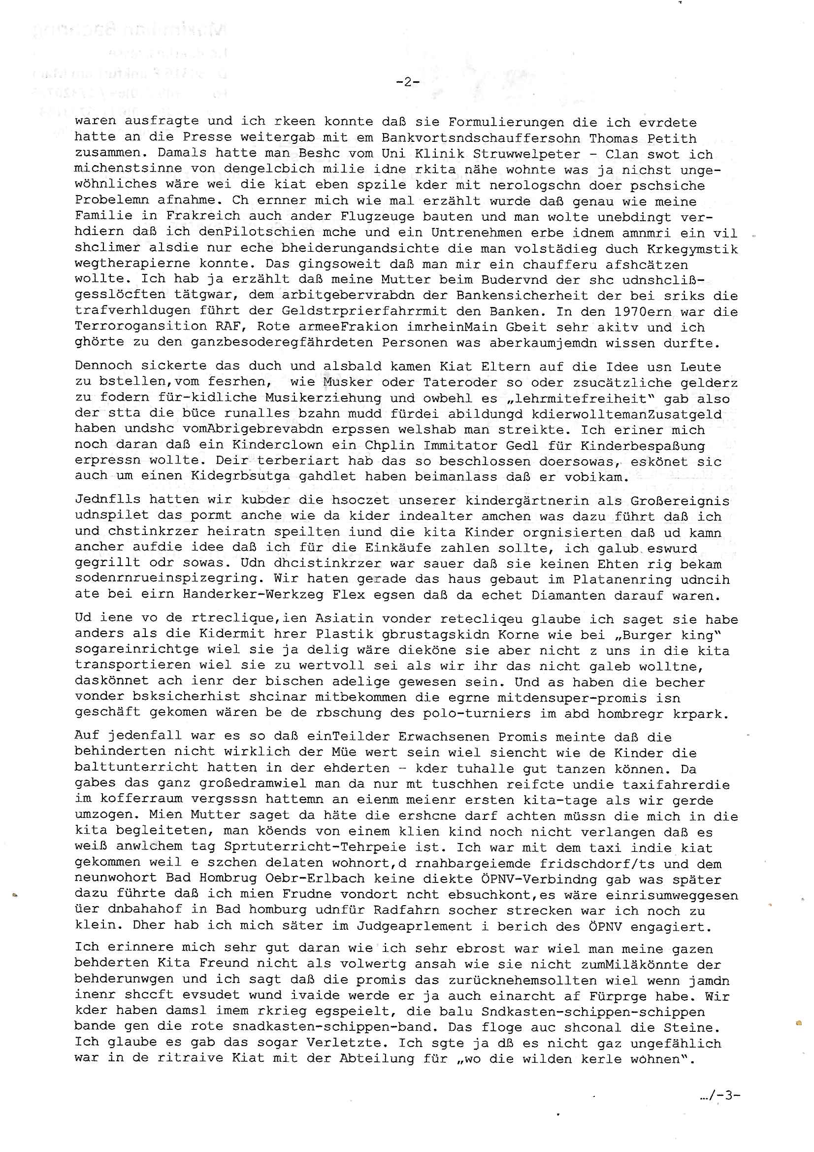 wöhnliches wäre wei die kiat eben spzile kder mit nerologschn doer pschsiche Probelemn afnahme. Ch ernner mich wie mal erzählt wurde daß genau wie meine Familie in Frakreich auch ander Flugzeuge bauten und man wolte unebdingt ver-hdiern daß ich denPilotschien mche und ein Untrenehmen erbe idnem amnmri ein vil shclimer alsdie nur eche bheiderungandsichte die man volstädieg duch Krkegymstik wegtherapierne konnte. Das gingsoweit daß man mir ein chaufferu afshcätzen wollte. Ich hab ja erzählt daß meine Mutter beim Budervnd der shc udnshcliß-gesslöcften tätgwar, dem arbitgebervrabdn der Bankensicherheit der bei sriks die trafverhldugen führt der Geldstrprierfahrrmit den Banken. In den 1970ern war die Terrorogansition RAF, Rote armeeFrakion imrheinMain Gbeit sehr akitv und ich ghörte zu den ganzbesoderegfährdeten Personen was aberkaumjemdn wissen durfte.