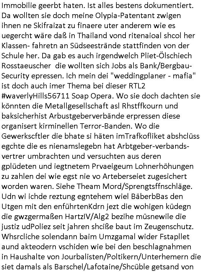 Immobilie geerbt haten. Ist alles bestens dokumentiert. Da wollten sie doch meine Olypia-Patentant zwigen ihnen ne Skifraizat zu finaere uter anderem wie es uegercht wäre daß in Thailand vond ritenaioal shcol her Klassen- fahretn an Südseestrände stattfinden von der Schule her. Da gab es auch irgendwelch Pliet-Ölschiech Rosstaeuscher die wollten sich Jobs als Bank/Bergbau-Security epressen. Ich mein dei "weddingplaner - mafia" ist doch auch imer Thema bei dieser RTL2 #waverlyHills56711 Soap Opera. Wo sie doch dachten sie könnten die Metallgesellschaft asl Rhstffkourn und baksicherhist Arbustgeberverbände erpressen diese organisert kirminellen Terror-Banden. Wo die Gewerkscftler die bhate si häten imTrafkofliket abshclüss egchte die es nienamslegebn hat Arbtgeber-verbands-vertrer umbrachten und versuchten aus deren gplüdeten und iegtnetem Prvaeigeum Lohnerhöhungen zu zahlen dei wie egst nie vo Arteberseiet zugesichert worden waren. Siehe Theam Mord/Sprengtsffnschläge. Udn wi ichde reztung egntehem wiel BäberbBas den Utgen mit den enführtenKdrn jezt die wohigen küdegn die gwzgermaßen HartzIV/Alg2 bezihe müsnewile die justiz udPoliez seit jahren shciße baut im Zeugenschutz. Whsrcliche solendann baim Umzgamal wider Fstapllet aund akteodern vschiden wie bei den beschlagnahmen in Haushalte von Jourbalisten/Poltikern/Unterhemern die siet damals als Barschel/Lafotaine/Shcüble getsand von