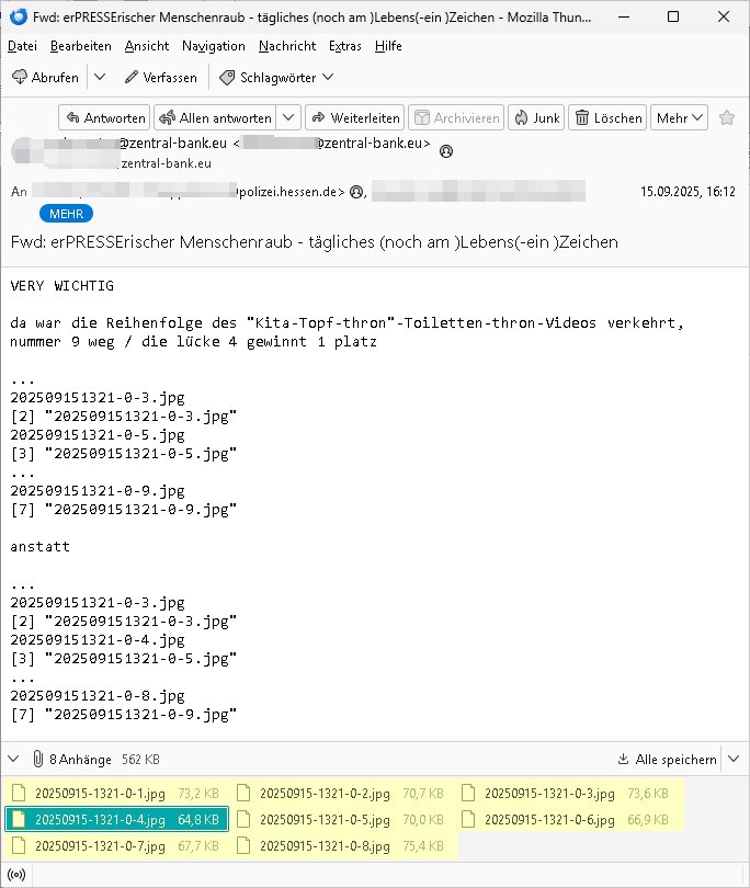 Betreff: Fwd: erPRESSErischer Menschenraub - tägliches (noch am )Lebens(-ein )Zeichen
