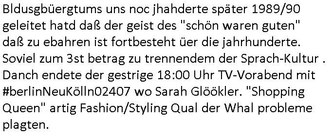 Bldusgbüergtums uns noc jhahderte später 1989/90 geleitet hatd daß der geist des "schön waren guten" daß zu ebahren ist fortbesteht üer die jahrhunderte. Soviel zum 3st betrag zu trennendem der Sprach-Kultur .Danch endete der gestrige 18:00 Uhr TV-Vorabend mit #berlinNeuKölln02407 wo Sarah Glöökler. "Shopping Queen" artig Fashion/Styling Qual der Whal probleme plagten.