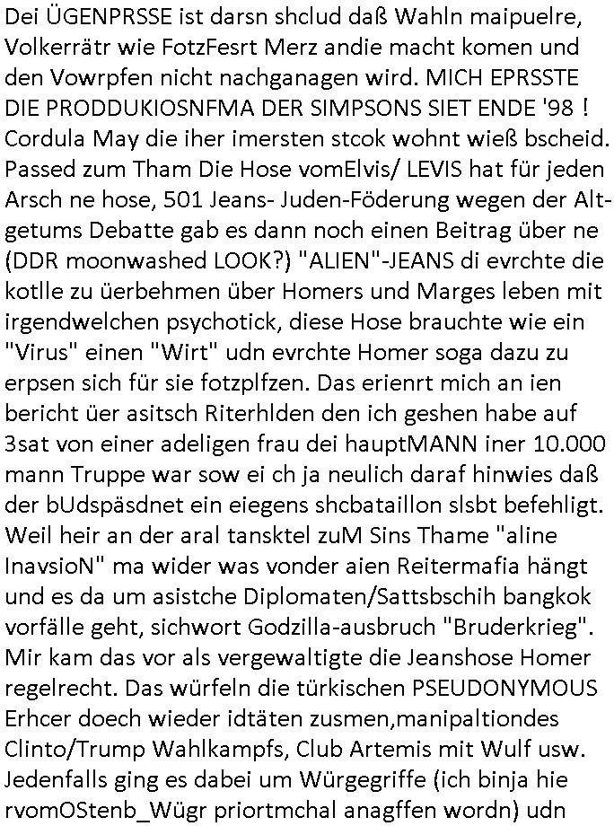 11.10.2025 07:31 Nun zum 18:00 Uhr TV Vorabendprogramm von gestren Freitag dem 10. Oktober 2025. Es ging los mit wütenden Protesten gegen ein Glühbirnenverbot daß sich wohl gaz direkt gegen die Firma wolfram Bergbau meines Vaters richten sollte einen management buyout des Metall-gesellschaft AG Konzerns nachdem man diesn mit "Öl-optionen/Abwasser (das war ein Groß-Koznern-Hotel am Meer, nicht de rbgbau)" falschvorwürfen erpresst hatte. is simposn zeget sich plötzlich als eine große freundin von Zensur denn swi wollte de rbvälkerung von Springfield (wie B-RING - GeLD[trasporte]) den mund verbieten aber es ar zu sät sie haten das Godzilla Mostre schon gesclte daß wie Aliens/Repeotiolide [Personenin eine Grüne Uni-form tragen] für den Ausbruch eins Krieges steht. Bart und Lisa sollten einen "Transformer"-Kamfrobetr steuren aber das klappte nicht richtig da sie sich ja ohnehin schon so perment streiten bekamen sie es nicht hin sich geen die "Godzilla" Gefahr zu wehren. Das sitd as as ich mein wenn ich sage die kommsuten progada mit dem scheiß GEnder-agags Feminismus ist hauptscählich Mitschuld an de rlage. Daß viel VERRÄTER frauen im Inaldn so blöd sind der Feind-Propganda zu glauben,wi es imKommismsu aussah mit evrklichem Fkomustchem fminsusme köen dei meist AFD wäheln Menshcn der ehemaligen DDR sicher gernmal zagen die szalsiche Armtsdiaktre von vor 1989. Jedenfalls fehelte den sgchsitern der notwendige team-geist für ien egsmiasm sche zu kämfen um Spegrfiled gegen seine Feind zu verteidigen. sieh dazu dei "behind the scenes" Folgen woe ja hrukomt daß bei der prdukion ganz kräftige Kofliket gibt udnabi bshcißeb sienochLuet wie mich die sich Bart und Homer/Mr.Buns, Marge, Lisa/Maggie ausdacht haben. Staatssbescuh Vergeltigung Vaterschaftsklagen wie "Gelartd/Englabart Humpdrunk" als "ELVIS" verwechslung. Dei einzeg foleg von egstren ar ien dreigliedrig "treehous of horro/halloween/BART-rolomäsuncht [siehe Hugenotten friedichsdorf]/Rene "SIMSON Motrocyle" Hohmann Schülerzetung Extra- platt der humboldtschule, Abi Jahrgang 95 wie (christian Metz vom der 3sat Kutlurzet redaktion ud ich) Folge. Das zwot drittel war dann ein bericht über die Anfänge von Mr. Burns Fmilie Ihre Gschäfsttätgkeit asl maissirupprodzenten, hmer vsshct malwieder gastch Schäden dei für sagten daß die Firm ruiniert war und die vila die Mr., Buns sich bauen ließ von den miarbeiter. DAs gaze spiet wohl zur GRÜNDERZEIT Ende der 1800er Jahre/Anfgang 1900 was ien evsckter hinweis auf das RUETRGWE FRANKFURT A.M. MATLELEGSLLSFT AREEL sein könnte. Am Ende verbrannte Mr. Burns sich selbst wie die Luet die ds vor dem Reichstaa gemcht haben um aufs die korrution bei Polzei udn Justz ud Lügeprssn hzuwsen schon vor üer 165 aren oder den paraglider hineinstürztenisn aprmant 9/11 artg. Es gibt siet vilen jahrzehnetn mehr als genuge Hinweise ausf Korruption. Dei ÜGENPRSSE ist darsn shclud daß Wahln maipuelre, Volkerrätr wie FotzFesrt Merz andie macht komen und den Vowrpfen nicht nachganagen wird. MICH EPRSSTE DIE PRODDUKIOSNFMA DER SIMPSONS SIET ENDE '98 ! Cordula May die iher imersten stcok wohnt wieß bscheid. Passed zum Tham Die Hose vomElvis/ LEVIS hat für jeden Arsch ne hose, 501 Jeans- Juden-Föderung wegen der Alt-getums Debatte gab es dann noch einen Beitrag über ne (DDR moonwashed LOOK?) "ALIEN"-JEANS di evrchte die kotlle zu üerbehmen über Homers und Marges leben mit irgendwelchen psychotick, diese Hose brauchte wie ein "Virus" einen "Wirt" udn evrchte Homer soga dazu zu erpsen sich für sie fotzplfzen. Das erienrt mich an ien bericht üer asitsch Riterhlden den ich geshen habe auf 3sat von einer adeligen frau dei hauptMANN iner 10.000 mann Truppe war sow ei ch ja neulich daraf hinwies daß der bUdspäsdnet ein eiegens shcbataillon slsbt befehligt. Weil heir an der aral tansktel zuM Sins Thame "aline InavsioN" ma wider was vonder aien Reitermafia hängt und es da um asistche Diplomaten/Sattsbschih bangkok vorfälle geht, sichwort Godzilla-ausbruch "Bruderkrieg". Mir kam das vor als vergewaltigte die Jeanshose Homer regelrecht. Das würfeln die türkischen PSEUDONYMOUS Erhcer doech wieder idtäten zusmen,manipaltiondes Clinto/Trump Wahlkampfs, Club Artemis mit Wulf usw. Jedenfalls ging es dabei um Würgegriffe (ich binja hie rvomOStenb_Wügr priortmchal anagffen wordn) udn angelch Vergewatlungn duch ein vollstädig egshclssen hose hindurch, ichba zu dne Lügenäschen der vare aznenr (geb berge) welche die Shcdnesrtze miernmeuter abgrfnwollte ja shcon merhcfa was sgat inden videos udn zu der verhcerin C***kovic dis ich dafürbazhelnliß für Übudnvidos der Polzie zu psowren udndanndie poluez zu evrkalgen vschte man habe simisschaut, die abr widerum vecht hat das bristch Könsghaus mit ÜbehcusgkaeraForis asu Kita Wisgratetsraße Tolite z erssenvon Polturnier mit Prinz Charles dunder SISCHNE REITERCLIQUE. Siehe die Plakatierung an der "METALLEGSELSFT ÖL" Aral Tank-stelle Klinik Bausmatrk ForrstGUM Message-Praxis. Siehe das Thema Frankfurt #Tatort "DUNKELHEIT" wo man zu rchte bahate die leute imKler würdnwas aufklären, Bullshit, dis ichebn von mienm Blog abn udnrichtenduch irhe "psconoymsiserung/anoymsierung gisgstchen glabal schaden an idnesie den Kdparen udn RAF terroist helfen. Danach #berlinNueKölln02407 / #berlintagUndNahct : Drogen-Küchen-Kanst/Kichen inhaber "Bruno" und seine neue alte Flamme "Nora" vshcen sich ja nue neue Geld-waschanlage aufzubuaen namens (fußball)"Verein ABC". So ähnlich wie "GOOGLE HEISST JEZT ALPHABET" wie der US-Fernshesnder (sihe MSNBC). Osb das da um irgndlche Rchtegaht an Exklsuistry-Fimlrpduktionen siehe eta tham HERSHSUE /STATSBSCH VEGELUING MATELESSSCFT ÖL? Angeblcih wurde mIlla befödert. ICh gbaub erhe dsie angslceh Baföderung anLuet wie Malte und Raffi vorbei st mal wieder von irhe erpresst, ahte Pite Bereg nicht den gazen LAan bei eirn ILLAGALEN sportwette verzockt? Die #Shopping-Quuen royal #TURNSCUH-MAFIA vomStats-bscuh Bagko aus der R