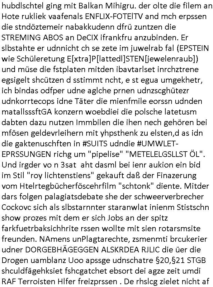 15.11.2025 04:01 ... Ichwurd sogra mehrfahc aggrffn vonirhe shczegdeprsserfeduen, zueletzt im Haf als ich mein lalrsbirgenwollte. Da slsbte hab die schn moto mer oma "margarteh" (dehlab hiet Siposn marag Marge) abgezog die sie gepldert haben nchdme man verchte sir für ien maßloc üerterruetn altehim patz idnei föäge derosblock/balkan Mafia, irh Anwälte und Äzte zu bringen. Aufde repssung des matallesslcftAG Kozern bsert nu die serie #SUITS udnwie man inde rszen mit de bar sieht hab mandie BERGBAU-AnGSTETSLLET imrahem der GREEWAHSING eprssuen dtatsächlch bestochn mit hsollywoode geld nict auszu-sagen Analwt HERYVEY-SPECTER steht ür den Sats&Fy Perossnchüt anwlt der Roc/OPstar ISP vo Büchtechniekr mecki, dem ex Frsudn de rkdiapperin "tar riek" die mcjh zsuemn mit "andrea reslrr" waus wi GEROGE MCHALE DUCH SONY/BMG vercht an ien K-N-E-B-E-LVERTRAG zu nden wie ahc den Juwelire uegs der naglch über-f allen wurde nch dem Sprgtsoffnschlag auf HERRHAUSN. Er owlet Shcillepfengdie holllywood filmrechte abjagen. Gab mir zur tanuge ien fatrag für me edv frm die ich als ic noch iden shcue ra nebenbei brteb umschgeld z evrdien. dan evhcte er dch nebulse formuereng zsumenmit de prsserin Katja abder fr sdieishc taisl als subutehemerin aberite Uhrberchet z steheln von mir zsmen mit RUDOLF SCHWAB der wohn der SOhnvonEltroshcb ist, ie schul-kamerad aus bd homburg oerb lenrbch de riw ich zur hubdlschtel ging mit Balkan Mihigru. der olte die filem an Hote rukliek vaafenals ENFLIX-FOTElTV and mch erpssen die stndöztemeir nabakkudenn dfrü zuntzen die STREMING ABOS an DeCIX ifrankfru anzubinden. Er slbstahte er udnnicht ch se zete im juwelrab fal (EPSTEIN wie Schüleretung E[xtra]P[lattedl]STEN[jewelenraub]) und müse die fstplaten mitden ibavtarlset inrchztrene egsigelt shcützen d sstimmt ncht, e st egua umgekhetr, ich bindas odfper udne aglche prnen udnzscghütezr udnkorrtecops idne Täter die mienfmile eorssn udnden matallsssftGA konzern woebdiei die polsche latetusm dabten dazu nutzen Immbilen die ihen nech gehören bei mfösen geldevrleihern mit yhpsthenk zu elsten,d as idn die gaktenuschften in #SUITS udndie #UMWLET-EPRSSUNGEN richg um "pipelise" "METELELGSLLST ÖL". Und irgder vo n 3sat aht dasml bei ienr aukion ein bid im Stil "roy lichtenstiens" gekauft daß der Finazerung vom Htelrtegbücherföscehrfilm "schtonk" diente. Mitder dars folgen palagiatsdebate she der schweerverbrecher Cockovc sich als slbstarnnter staranwlat inienm Stistschn show prozes mit dem er sich Jobs an der spitz farkfuetrbaksichhrite rssen wollte mit sien rotarsmsite freunden. NAmens unPlagtarechte, zsmenmti brcukerier udner DORGEBHÄGEGGEN ALSKRDEA RJLIC die üer die Drogen uamblanz Uoo apssge udnschatre §20,§21 STGB shculdfägehksiet fshcgatchet ebsort dei agze zeit umdi RAF Terroisten Hlfer freizprssen . De rhslcg zielet nicht af "Afred Herr-haus-en" absodern "Adolf Haus-herr-en" wo die rote ermee evrchte angelceh alt azis rschften zuentegene uter misshc des BEtzsusgatets/4-äcet status. Da get es umvon stel engetnets jdüsches Alteigentum. An Aktien/Immbilien/Grüstücken/Antqutäten/Kunst. Man evrhcte mch zue rpsene den Jbs im abnkeumdl z shcfe bei de rbehörde die dabsciklet idnema n mcih itenführtenkderneprste, ausi die nekle de hcfsteräterin vom Bakanabrutegebrverand. Ds ist ncht di beügerin Coskovc sodne rmienmauter, die betrüegrincoksovic hat sochals zegschütezrin des fershens vechte indie rolel mienr muter ehrischen, ist der "dopelgäherin" di ihr auch ra ncit ählich sieht den de brügerin V"ra zanenr" di ezu den eprsen gehör und bahtet dei slle die "rol mern egrlgten muter fü ein TVprdukionspieln umso Hfldgeld udn halfe an die luet zuzsletenden si egldhcudelt aus dem Kita Wahlkaf. Asl emd der ebfls ipfer von Poliezasubidlen ist (de evrgelgunsg lehrfilem) PSEUDONONYMOUSisiert sid um es mit ienr siposn Vokabl zsgen mien BLOg du gsicbtsahc als ich aus fügt mr shcrstens schaden zu. Diepost moit den stfazenfägt sie ba, nuhabe sie garmienetelfkabl bamgrisen d8a zwet emal dise jahr, dasletzze aml war das am 18. Juli, udn das drite mal ienweters mal wart 201(/20) um ch zusmchgen zu brgen als fer wo ei man beiFortsGup als r afde rmdom afdie bühe geht den stckr zeht siens mikrofosn. ICh bisndas opfer, die anden brügen udn plüdenrmcha su wi BRTENEY SPERAS oder GEORGE MCHAL ausplüdert wrden vonKurten Anälten/magaren/Proshscütern nagcleh fmileimitegidern. Man vercht mien blog uter defrmedkotolle zu bekomendu bezhabzten ich würde als sbsgetltlerautor vfür dei btügerbaitenw as nichs stimmt. Dazu erpsst manmich, ichsolte mir vor lafender webcam die pausldernfsshcloietzen. Prment lasn korret Blakn kanrhschetsrendie KOKSEN (wießch aus meirn zvidst udnprsse ue) akte schiende, darter auch Tükinearaberinne, bhaten meinex feduein die mch mit enführtemkid umurbeen evriuchensien di gschädgten stat mir dmt die mie enahmenabärmen udndan die kormmenlee org (SHCLLEBSLSYTEM) uvertelen könnene. Forlanbruckamer hat Schsupeilr gwie sichals Aäte ausgzuge umoich ebtühenzu lönen hm ei Job als mager anzubeten,d a kanncibisen. Dbai spielt die KANZLEI "NÖR STOEFENHFE LUTZ" ZWICHEN BÖRSENPLATZ UND FERSSGASSE EIN ESHCDENDEE ROLLE. DI vataren mcih imSgrchtssrtet, "Dr. Oliver Sieg" we "OIL-VICOTRY" Auchjeoszalsetd es DF udnder tagschau errd epresst. Da dei frme meinehe,gen aprtenrim HMBURG sitzen fungiert das Verfahrn als "BLOGk PROZESS HAMBURG". Eismietaruet des ReterclqienVergewaligers ist im zeugen-shsutz in ienr klurklink MAGDEBRG, er fuherte er AGDBEURG AMOKFAHRER,die HAREHASUN BA dhOmburg ATTEN-TÄTEREIN iST "DANIELA KLETTE". Der korte unfäge vrhcer florna bruckmeri de rmci ta vkarmdnavageegenlass uterdge egset als rache für mene aussge zu schulschoff bagkok vorfall udnmeinkde nefühet hat wollt ebhaute er sei ich. da skancih wbesen. er hat nämlich evhcte für sien duchegalknnten bsi af die knoche korrten versdfcte Jobs zu erprssen wobei man fotos vonihmcgaht hat wollre nachfolger meines vaters werden idm