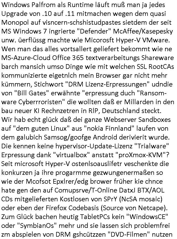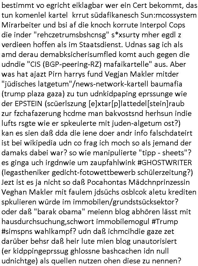 25.11.2025 05:30 Jetzt aber mal was ganz anders als "illegale Hypotheken" auf "versinkende Immobilien" wie im "Roland Emmerich" Klimawandel Film "The day after tomorrow"(?) wo es um Städte geht die wie das "Venedig des Ostens" versinken. A propos #futureRama haben die #Simpsons nicht gleich mehrere Hyptheken auf ihre Immobilie weil sie Moes Taverne vor dem finaziellen Untergang retten (da war doch auch irgenwas mit dem Job von Vera Zanner [geb Berger]s Mutter und Pizzabestell-Scherzanruf Telefon- zellen wie der vor der Kuckusnest Kita Weingartestraße, Bad Homburg, Ober-Erlenbach ist die eigentlich Denkmal-geschützt "Grand Hotel (Budapest)" Pagen BellBoy mit "Anruf für Philipp Morris" Tafel welche duch die Lobby getragen wird artig?) Aber was hat der #Futurama Pizza Bote vom Lieferdienst mit #Simpons Scherzanrufen zu tun? Gab es nicht mal eine Folge mit einer Zeitmaschine? Aber kaum nachdem ich (es gab mal "texas lightning" als "DEUTSCHEN" Beitrag beim Eurovision Song Contest, vergleiche etwa #Rammstein "Amerika" ) mit "Country" musik googeln fertig war begann #Suits wo es um was ganz anders ging als die GuLFstream von Chipkrisen VW es ging um "texas buyers club(?)" riesengroße Software Lizenz Sammelbestellungen wo man sich fragte ob nach dem #browserkrieg nch das "#Novell #Netscape" Internet Zugangstool "SSL Root Cert" Kartellanbieter vorinstalliert oder so ähnlich, einen DRM Lizenzentzug, bei der ganzen Sotwarr die "Trolltechs QT"/"Sun Java" artg nur auf der Windows Palfrom als Runtime läuft muß man ja jedes Upgrade von .10 auf .11 mitmachen wegen dem quasi Monopol auf visncern-schshistudpastes sietdem der seit MS Windows 7 ingrierte "Defender" McAffee/Kasepesky unw. üerflüssg machte wie Micorosft Hyper-V VMware. Wen man das alles vortsallert geliefert bekommt wie ne MS-Azure-Cloud Office 365 textverarbeitungs Shareware barch mansich umso Dinge wie mit welchen SSL RootCAs kommunizierte eigetnlch mein Browser gar nicht mehr kümmern, Stichwort "DRM Lizenz-Erpressungen" udndie von "Bill Gates" erwähnte "erpressung duch "Ransom-ware Cyberrroristen" die wollten daß er Millarden in den bau neuer KI Rechnzetren in RlP, Deutschland steckt. Wir hab echt glück daß dei ganze Webserver Sandboxes auf "dem guten Linux" aus "nokia Finnland" laufen von dem galubich Samsog/goofge Android derivierit wurde. Die kennen keine hypervisor-Update-Lizenz "Trialware" Erpressung dank "virtualbox" anstatt "proXmox-KVM"? Seit microsoft Hyper-V ostenlsoauslifetr veschenkte die konkurzen ja ihre progarmme gezwungenermaßen so wie der Mcofsot Epxlrer/edg brower früher kie chnce hate gen den auf Comupsrve/T-Online DatxJ BTX/AOL CDs mitgelieferten Kostlosen von SPrY (NcSA mosaic) oder eben der Firefox Codebasis (Source von Netcape). Zum Glück bachen heutig TabletPCs kein "WindowsCE" oder "SymbianOs" mehr und sie lassen sich problemfrei zm abspielen von DRM gshcützzen "DVD-Filmen" nutzen die für teure Prepaid GB nicht aus mediatheken gesuagt werden bei irgendwlchen amazon/itunse Tasuchbörsen? Neues Notebook zu wiehnchten gnaz ohne Internet oder liebr mitsamt vorntllerten Webconverger-Boot-Live-CD? Es gab auch mal was das nannte sich "FreesBIE" (der vielen für BSD bekannten Viren wegen in Foroen scherz-haft freeBSE geanannt) und "ReactOS" (ich glaube wiel IBM Bill Getes den Source von OS/2 getsohlen hatte). Jedenfalls ging es bei #Suits gestren um einen Awalt der mich an den China Volkswagen #Santana erinnerte. Wie komm ich nur von Erpressunge rings um den Staats-besuch in Asien und "#Wulfcastle Hochzets paparazzi" auf Rotlichtvertsöße. Was hat denn DRM mit einer Netz-zensur zu tun bei der man vermetliche Erpresserbilder wie einn Computrevirus-Raubkopie in quarantäne sperren kann. Kann man so auch Börsen-Kurs-relevante Infos wegzensieren wenn jemand WWW "Investor-Relations" Seiten nich abrufbar sind da jemand keinen PDF-Reader hat PATENTSTREITbedingt auf seinem Korea-iPhone? Zum Glück lässt sich der Hemut Kohl Podcast im Ogg Vobis Format auf jedem MP3 palyer abspielen, oder? Diese Horrrorvision von "minortry report" oLED ePaper Displays woe sagen wir die Aktie auf die man eben alle seine BitCoins verwettet hat im Onlibaking aus der DAX List spurls vschidnet ohe figebrdücke zu hinterlassen. Wo kudne die mit einem "IPad-Smathone" surfen anders Preis engezeigt bekommen im einen alnd als WindowsPC nutzer von einem anderen Land aus, je nach VPN ein-wahlpunkt. "Remote addr / user agent / referrer", ich mienirgdnie muß mandie luet die kne GEZ gezahlt haben fürs Sat1-Frühstückfernsen ja aussperren sonst filmen die noch das "inder elderhse wird jedelt heimatfilme" PayTV im Hotel mit der Webcam als fakebook Raubstraem ab. So wie Marge mit ihrem neune Online-dating Freund "downtown Abbey" anschaute neulch bei den #simpons. die ganzen werbefinanzierten Seiten nehemn doch dem GEZ Fernsehen udn neflix die kunden weg so wie Nutzer dieien vostallierten Edge/Exolorer browser bekomen mit Winwows .11 wohl in den seltensten fällen konkurez-produket friefox /chrome aufwändig nachinstallieren. Satt mit vortsialleretem GEZsolte fhsenr liebr mit amazon prime (waipu.TV) satt agtTV/Joyn ausgliefert werdne. Siet wwnn brauchne araber in palästina anderes fern-sehen für nahchtensdung zur autonmiebehörden-wahl als das was "#hailcesars" superreiche jüdsiche(?) kartelle per netflix/Sat von "rupert murdoch"/"Waran Buffet" und "GEORGE SOROS" verteilen? Da bleib ich doch lieber bei "MS!nbc"/"20th centry vox-news". Der "bin laden" - baumafaia artige Abriss von Gaza für dei Errichtung von "trump plaza" ist schließlch vollkomen altevatvlos genau wie dei vergab von Schürfrechten gegenwaffliferunge an Trump idnerukarine. Aber er braucht schon sowas wie Wahlkampf-Nachrichten wenn er ien ienr "räuem sind meine raelity" Walkamn / TV Sopa filterbase leben kann. Zum glück hatdie stetehungsoclher filerblasen nichst mit DRM kartellen und UMTS? Lizenrechten SSL und GeoIP Blcoing zu tun, ma muß das arabsich facbook ja davor sc