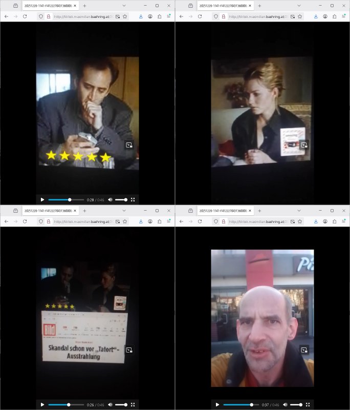 28.12.2025 00:00 Am Samstag, den 27. Dezember 2025 um ca. 23:20 Uhr hat es etwa in Höhe des Nachbar-Hinterhofs eine lauet Böller Explosion gegeben die prima zu ner "Rammstein" Video Bühnenshow gepasst hätte wie der in dem #Tatort Krimi vom Freitag dem 26. Dezember 2025 um 20:15 Uhr mit Ice-könig Snow-"Flake"s im Theatertunnel wie dem an der "alten EZB" den man hier in meinen Blogs findet. hab mir den #tatort nachmal angesegn und rausgefunden daß er ca. bei Timecode 00:53:00 nen Zeitsprung macht in der Mediatheken Version wenn man ihn von meinem Netz aus aufruft zumindest. Ich hatte eine ganze Reihe von dejaVus von dem Abend als J"ack White"damals in der Kneipe meiner Komillitonin und Ex, dem Hexenkessel in Bad Homburg, auftauchte das war etwa Ende 1998.Warn da nicht ein paar Takte aus "DU RIECHST SO GUT" im Tatort über das zu wechselnde "Trikot" zu hören? Da wo man sich über Kudtsfreiheit beklaget, Zeitverträge die wie ne HartzIV/ALG2/Bürgergeld Weiter-Bewilligung jedes Jahr aufs neu eine Zitterpartie wie bei nem SSL-Cert sind bei der Erneuerung. Abends hatte ich in einem BILD Online Artikel gelesen daß Rammsein Keyboarder Flake im #tatort mit 2kur der am Sonntag abend läuft mitspielt. Ich erinnerte mich auch irgendwie an die Schauspielerin. Ich sah mir dann nochmal das Video zu #Deutschland an. Dieses hatte ich bei seinem von großem Medienrummel begleitetem Erscheinen ja auch hier im Blog besprochen. Römer-Retter am Limes "auf der Suche nach Mr. Spock". Im Song geht es ja um das Thema: "Wer Deutsche nicht mag soll Deutschland verlassen" aus #merkauMussWeg Demo Sprechchöre - Zeiten damals und ich mußte wohl wegen des Weißkopfadler Markierung #Ring und diesem #WSMDS (katapultstart)Container(-Tunnel) Bühnenbild wo man Styropor zu Schneeflocken verarbeitet hat wie in dem "making of"-Podcast zum Song "white christmas" welcher der #Simpson Folge "Summer Springfield Xmas" zugrunde liegt, bei den #Simpsosn ja auch noch diesen Podcast der "Lyndon B Johnson" Onboard - Vereidigung der mich irgendwie an diesen Screenshot aus "Robert Habeck"s an der S-Bahn Wahlkampf-Kinofilm erinnerte. https://www.bild.de/unterhaltung/tatort-wegen-rammstein-skandal-schon-vor-krimi-ausstrahlung-694fc581a447568d66cf716e https://www.ardmediathek.de/tv-programm/691af39a688bff5ddbd71e9c https://www.youtube.com/watch?v=NeQM1c-XCDc https://en.wikipedia.org/wiki/A_Springfield_Summer_Christmas_for_Christmas https://www.ndr.de/kultur/film/tipps/jetzt-wohin-nachdenkliche-doku-ueber-scheitern-von-robert-habeck,jetztwohin-100.html [0] "202512280000-0-1.jpg" [1] "202512280000-0-2.jpg" [2] "202512280000-0-3.jpg" |