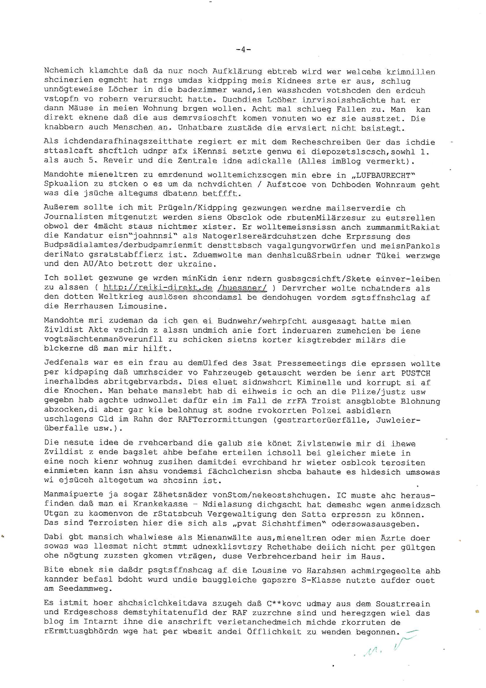 28.12.2025 15:15 Beihilfe/Begünstigung RAF–TERROR per Postunterschlagung Kursmanipulationen/erpresserischer Menschenraub/Straf-vereitelung, Gefangenenbefreiung, Zeugen-Medizinvergiftung/Vergewaltigung Im Internet findet sich unter der URL http://banktunnel.eu/pdf.php und URL http://blog.sch-einesystem.de/ mein ausgedruckt über 35.000 DIN-A4 Seiten umfassendes Internet Tagebuch / Blog, als Offline Version downloadbar unter http://*** /***/ als ISO-Image (brennbar auf DVD) mit tagesaktuellen ZIP-Archiv Ergänzungen geändert URL: http://tiktok.maximilian.baehring.at Maximilian Baehring Hoelderlinstrasse 4 D-60316 Frankfurt/M via LKA als Fax: +49/(0)611/327669122 Generalstaatsanwaltschaft Frankfurt /M. über die gemeinsame Poststelle der Justizbehörden Frankfurt am Main Gerichtsstraße 2 D - 60313 Frankfurt /M. Frankfurt am Main, den 28. Dezember 2025 RAF TERROISMSUS ZEUGENEINSCHÜCHTERUNG KIDNAPPING LÖSEGELD-FORDERUNGEN/ERPRSSUNG Stromzählern Manipulation / Beweisvernichtung / tätlicher Angriff 06. November 2025 Einschreiben RT 1019 3609 5DE vom 07. November 2025 an das LKA in Wiesbaden vorab per Fax an die +49/(0)611/327669122 am 06. November 2025 um 13:49 Uhr: Onlinewache Strafanzeige Az.:2025-1106-1336-8161 Polizei Frankfurt 1257611/2025 „Whatsapp“ Nachrichten mit +49/(0)177/7777393, 13. Oktober 2025, 13:07–13:16 Uhr Aktenzeichen 28098 C 360/24 AG Frankfurt/M (Niederrad), Aktenzeichen 380 C 478/21 Amtsgericht Frankfurt/M (Höchst), Aktenzeichen 2-16 T 94/24 Landgericht Frankfurt/M Aktenzeichen 1518 OLGCE 86366/2025 Oberlandesgerichtspräsidentin André Wilkening Aktenzeichen 1 KS 112/24 Landgericht Verden RAF - Terrorismus / Daniela Klette Eischreiben RR868520519DE an Generalstaatswanwaltschaft, Schloßplatz 2, 29221 Celle vom 24. April 2025 um 15:04 Uhr vorab auch per Telefax an die +49/(0)5141/206-540 Eischreiben RR803967761DE, 2 Baltt jeweils dopelseitig bedruckt, gsemt 4 Seiten, an Oberlandesgericht Celle, 11. April 2025 vorab Fax an +49/(0)5141206208 um 10:13 Uhr Mit großer Genugtuung hab ich der Presse entnommendaßesnichtnur eine Razzia gab gegen 17 Beamte des 1. Reviers, Zeil 33, 60313 Frankfurt /M bei ihnen gegenüber. Außerdem ist auch überall von dem IT/EDV Beschaffungsskandal bei Polizei/Justiz die Rede den ich immer wieder als Ursache anmahnte für abgefangene und abgehörte Telefonate und -faxe/EMails oder auchmanitaion bei Onlinewachen Strafanzeigen. Ich afsse daher nun neuen Mut daß Korrution in Reihen der(Ermttlungs-)behörden beseitgtwurde/wird oder zumndest soweit abnimmt daß das Rechts-System zumdnstes halbwegs funktioniert. Wie sie wssne binich wichger Zge in Terorismusstrafsche Herrhausen/Daniela Klette, Wahlmanipulationen Bundespräsident/Marineschulschiff Staatsbesuch Bangkok/Thailand Vergewaltigungsvorwurf und hochadelige / Olympia Kurpark Reiterclique Öl/Gas Schürfrechte UkarineAlteigentumskriege betreffend. Wie ihnen ebenfalls bekannt ist war meine Mutter Chefsekretärin beim Bundes- verband der Wach- und Schließgesellschaften, Arbeitgeberverband Banksicherheit. Wie sie auch wissen hat man meine kleine EDV Firma per DDOS/Viren/HAcker/Spam- Atatcken in den Ruin getreben und versucht mich zu erpressen Fake Angebote für öffenliche Ausschreibungen abzugeben so daß ein Kartell um AS8220 Colt Telecom Aufträge für Annindungen etwa der Euoropäische Zentralbank EZB gewann, da gings auch um eine Mindeststandlietungslänge der AS3220 D(eutsche)T(elekom )AG. Man hat zudem geplan/versucht an Netzknoten 38Ghz Richtfunkstrecken und in Rechen-zentren /Mails abzuhören. Dabei gings unter andrem um die Luftfahrt(motoren)-industrie und die Lieferung von Hartmetell für panzerbrechende Granaten an die Nahost Rüstungsindustrie woebi auch der Knoten meiner füheren Firma „msd.net“ in der Louisenstraße 101, 61348 Bad Homburg v.d. Höhe betroffen war. Da gaht es etwa um den Gaza Krieg. Durch sorgerechtstechnische Entführungen meines Kindes „Tabea-Lara Riek“ (* 19. September 2000) und Rufmord Erpressungen veruchte man mich und mien Eltern sowi emien Mitgsslsfter zu eprssn Immobilien und Firmen-anteile zu überschreiben oder Personal einzustellen dauter duchd ie widerveigung arbeitslos gewordene Soldaten etwa als Wchmänner im Onlienbankin Rechenzentrum. Cihw ar nicht nur uTrenmehr sondern auch Politiker/Redakteur einer Zeitung. Ich bin einer der Erfinder des WWW Standard – Internets daß man aufbaute um Recherchen der Schülerzeitungen zu koordineren . Nach mir ist etwa die Such-maschine b(ähr)ing (von Microsoft) benannt, auch die benunng von „google“ be-nannt nach einer schwimmbrille) die ursprüglich „maTRix“ heißen sollte stammt von mir. Zudem gehen TV-Serien wie „die Simpsons“ und kinfolme de sich mit KI/ Fakes und digitalen Dokuamenten beschäftgen auf mich zurück etwa Schtonk (die BKA Echtheits-Gutachten) oder ForrestGump (Fake Handshake Hanks und Kennedy). Als das schülerzeitungsnetz aufegaut und „Prinz (William und) Harry“ für die Reiterclique der Schülerzeitung Gastbeiträge eröfflichen sollten/wollten um zu igen daß die international Schools sich ienauslädksrerposdnten netz aufbauten zu dem Rechche-nchslgewerk-Dienste wie „Wikipedia“ gehören sollten (in ienr Koopraion mit 3st/ZDF TV Mianz), Wiki ist nach dem „ich habs“ Wikinger aus der Serie „iki und die strakenmänenr ebannt worden“ später verschleierte man die Herkunft aus soagennten „Edit Wars“ Wiiscftsfereihet-Sichrheistgründen swoeit mir bekannt. Auch russischejapashcie Kernforscher vschlerten (afaik per CERN) ihre Programmierbeiträge da ging es um „Atokfat Nien dnake“ Recherserver für Tschrenobyl/Hiroshima und Nagasaki Info-Material das zugäglch genacht werden sollte. Außerdem ging es um ns-Verbrechen und stalinistisch OstblockEnteigungen weshalb die Kriegsgräber/Vetranverbände und Militärs sich etwaper ARPA-NET am Aufbau der zivilen nuzebakiet des WWW beteiligten, daher sichern frühere bestatunsmächte per RIPE Europas IP-