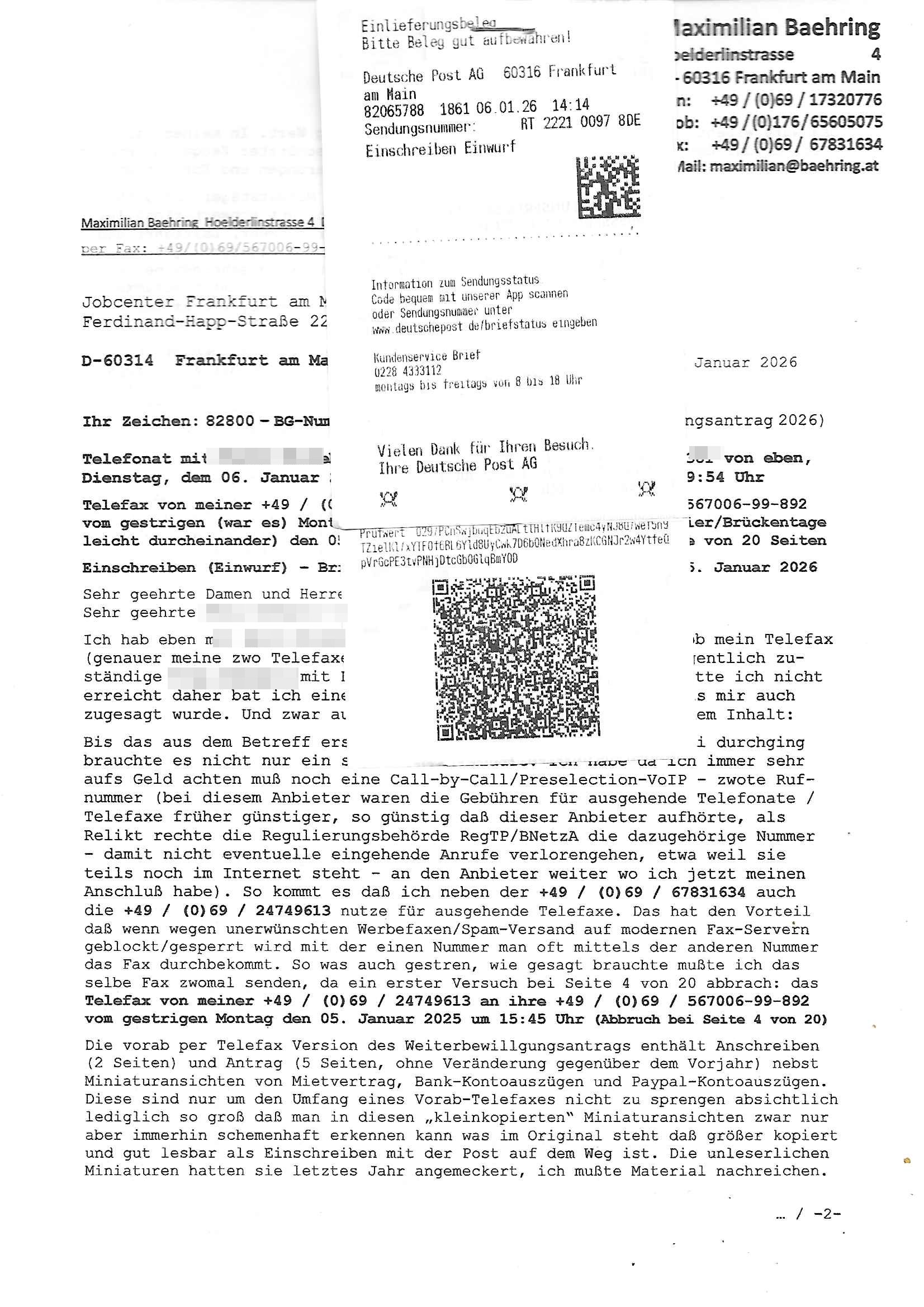 Telefax von meiner +49 / (0)69 / 67831634 an ihre +49 / (0)69 / 567006-99-892 vom gestrigen (war es) Montag (?, war durch die Jahreswechsel-Feier/Brückentage leicht durcheinander) den 05. Januar 2025 um 16:17 Uhr im Umfange von 20 Seiten