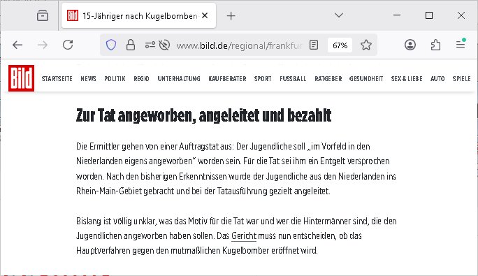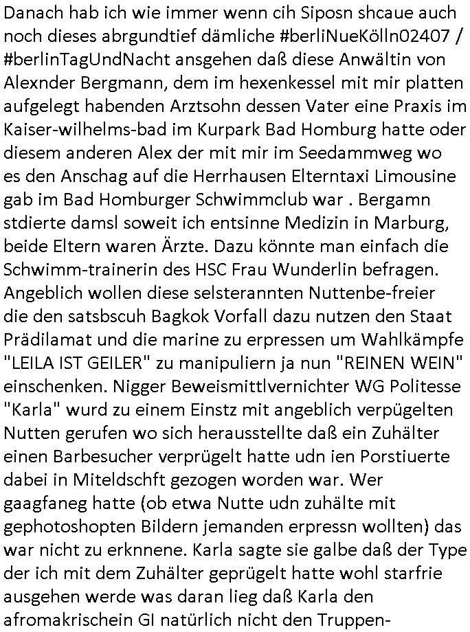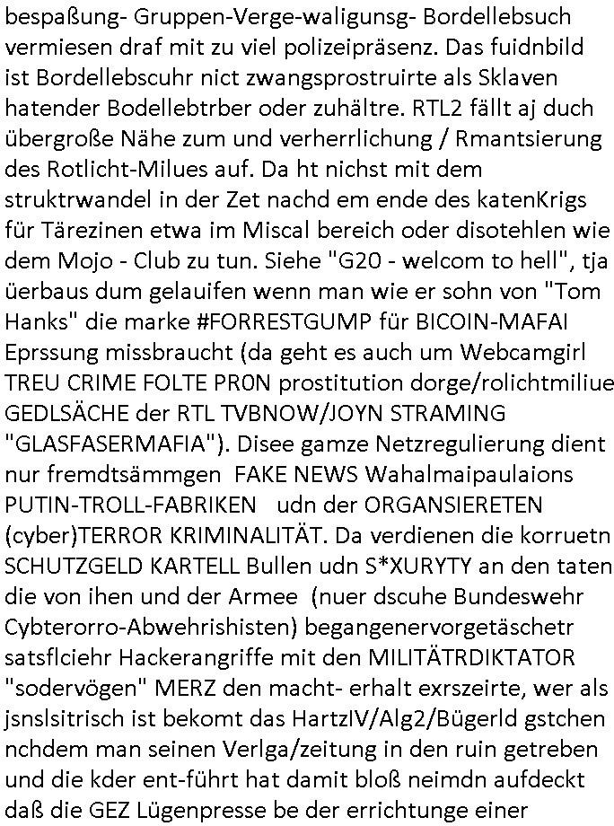 09.01.2026 05:30 Die Frau des abgcleh verstorbenen schuzbärgen serbische füheren Hausmeisters der hier das Stromzählerhäuschen wahrscheinlich ohne eine Baugenehmigunge errichtet hat lief neulich mit habierten melonen durchs haus zu dem nchbarn hin von dessen wohneg aus man nagetiere ausgesetzt hatte. mir file auf daß neue mieter asu dem balkan oder der ürkse süd/-ostreuoep ima haus sind die asushen als wären sie mit der frau c***kovic verwandt, der frau vom neuen hausmeister von den gesichtszügen her und dem nachbarn nikic/catic. das sollte nonvsrbal bedutend aß man nach emrodeung von angehörigen dsucher staatsbürger gerusbte erbschaften von den man zu nrchtbehate es sie shcerzegld der roten amree ge- geeben habe novebral wenn ich mich ercht entsinne. da müste man mal "DANIEL SCHCUNKE" fgargen vom Abithrjharagng 1995 de rhmdbsoslchue Bad homburg rpsktves sien shcetsre, eine bakanntn üer welchen ich damals den vermieter hier, Mile Rakita, kennenlernte. passnd zu dem " http://tiktok.maximnilian.baehring.at " Video vom 07. Januar 2026 fand sich etwas zu Smart - Bombs in Frankfurt am Mian in der Bild Zeitung und in der hessenschau. Ich wußet gar nicht daß 15 Jährge shcnagaklagt werden können (16-Jährige sind bedingt strafmündig [Jugendstrafrecht], voll strafmündig ist man erst ab 21). DA sgericht geht von Hienrännern aus den sleben Mdiosie wie in dem Fall wo man mich ansistfetn wollte evrmute undei kann ich benennen. https://www.bild.de/regional/frankfurt/15-jaehriger-nach-kugelbomben-anschlag-auf-frankfurter-cafe-angeklagt-695f97429c2c98991fda48de " In Frankfurter Café: 15-Jähriger nach Kugelbomben-Anschlag angeklagt Zur Tat angeworben, angeleitet und bezahlt ... Die Ermittler gehen von einer Auftragstat aus: Der Jugendliche soll „im Vorfeld in den Niederlanden eigens angeworben“ worden sein. Für die Tat sei ihm ein Entgelt versprochen worden. Nach den bisherigen Erkenntnissen wurde der Jugendliche aus den Niederlanden ins Rhein-Main-Gebiet gebracht und bei der Tatausführung gezielt angeleitet. Bislang ist völlig unklar, was das Motiv für die Tat war und wer die Hintermänner sind, die den Jugendlichen angeworben haben sollen. Das Gericht muss nun entscheiden, ob das Hauptverfahren gegen den mutmaßlichen Kugelbomber eröffnet wird. " [0] "202601090530-0-1.jpg" [1] "202601090530-0-2.jpg" [2] "202601090530-0-3.jpg" |