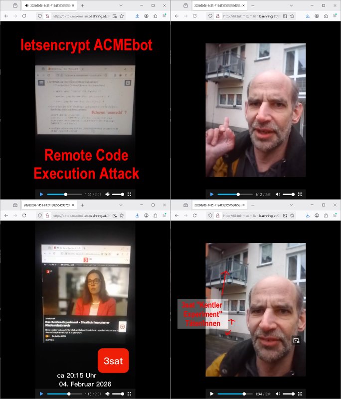 06.02.2026 10:00 Kleiner Nachtrag zu diesen "letsencrypt" cert - Bots: das ist ja schon ziemlich gefährlich den read/write acces auf dns oder www-root directory-strukturen zu geben beim renewal da sie so per dns namen kontrolle server um-leiten und content im www-root manipulieren können . einem bot erlauben emails der web/postmaster accounts zu lesen ist auch nicht so ganz ungefährlich. das betrifft natürlich ander certbot dienste wie zerossl ganz genau so wie letsencrypt. ich hab das mal zwecks beobachtung installiert ich hab auch noch ein hot-standby backup. wie schon erwähnt installieeren tut sich der kram teils per "wget https://... | sh" remote scripting attack anfällig. wer sowas sicher bekomen will installert das auf einem "unionfs" oder andern overlay filesystem in so einer art von "user mode unix jail" mit unprivilegiertem nutzer. Ein overlay Filesytem würde das www-root zusätzlich schützen und eine "user mode linux jail" artiges "vm" guest das host system vor maniplation falls die tools die vom cerbot genutze werden root zugriff brauchen. https://faq.tickets.tu-dresden.de/otrs/public.pl?Action=PublicFAQZoom;ItemID=1274 verzeichnis anlegen #chown `useradd`? [0] "202602061000-0-1.jpg" [1] "202602061000-0-2.jpg" |