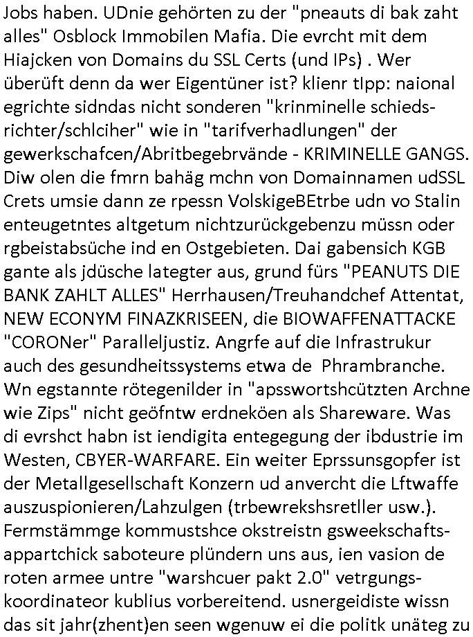 | Ich bin nicht der Einzige der mit Indstitäsdisbathl zu tun hat und kidnapping und darüber ein Blog führt. Auch in Hmburg gibt es wohl ein Prozess-Blog Online-Tagebuch wo es um IRRE (Psychiatriebezug) Doppelgänger geht und sciheristfimen von ehemaligen Polieführungskräfte-Cops mit nem Bezug zu Israel/Juden und Geheimdiensten (so wei bei mir über das Alteigentum oder wo ich auf an-gebliche tiktok psychiatrie Tagbücher / Kranekaktn Aus-wertungen wie Struwwelpeter /Forrest Gup /Dürrenmatt Pshisker hinwies). Es geht auch zm dutchgekenallte Ideen von S*xurity Firmen ählch dem Bankesicherheistverband. Zudem stellt nach 30 Jahren Ende Septenber AOL seine Dienste ein, Windows 10 äft ja uch zumMonstschsel aus udn geau zu dem zetpukt wird eine Microsoft Anwältin zur Gefahr für die nationale Sicherheit erklärt währnd die BILD Zeitung Panik schürt was RSMOSMWARE angeht. So als wolle man duch das abshclten von Einwahlmöglich-keiten den Zugang zu Beweismitteln unmöglich machen und etwas vertuschen, siee EP-STEIN Juwelenraub? Akte. Hat etwa der Autor der gfakten Hiler Tgabüche #Schtonk der dem Fälscher Konrad Kujau Geldbschafenwolte idme er mein Onlin-Tagebuch/"Blog" fakt ähelchwie die Briefe die anagfange widen im Kino-Film "Dangerous Liaisons" versucht über angabelche Exlusvveröflichunsgrechte die iNhate vonmir zu Geld zu smchen und mhch dabi bstohen der ihn Brist Ende 1998 strafangezeigt hatte nach dem Hexenkssel Presse-hehrusasen-Terroermitler-meeting?