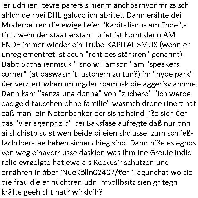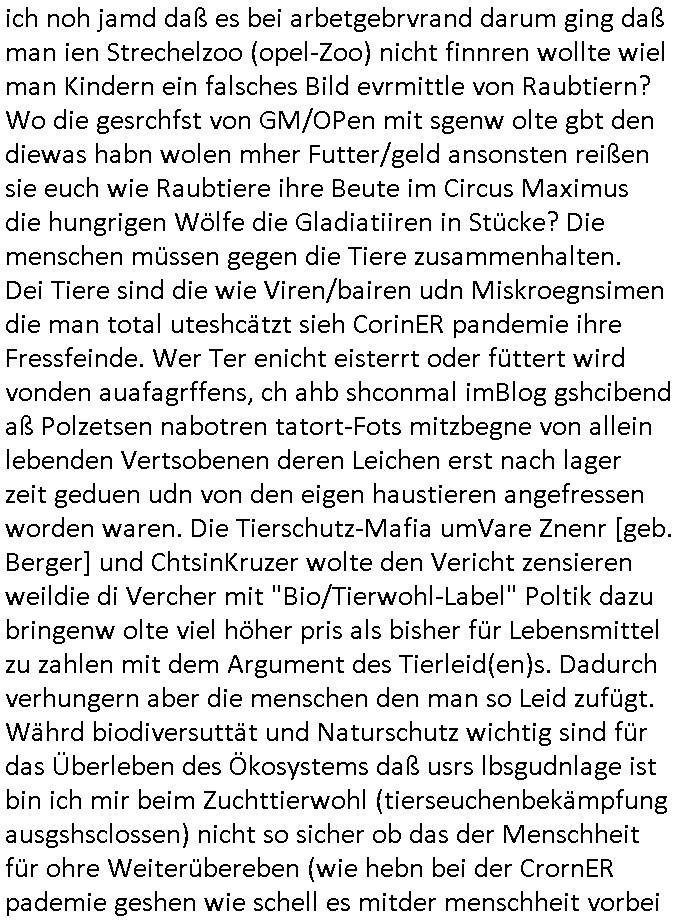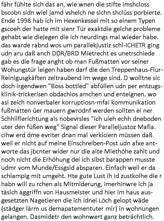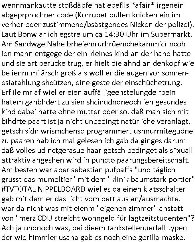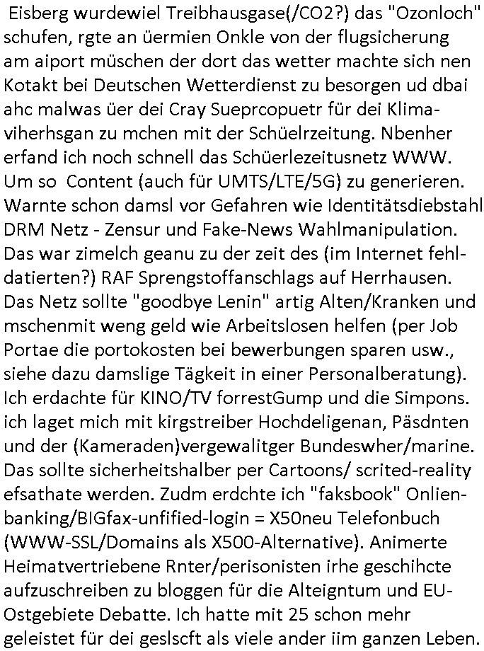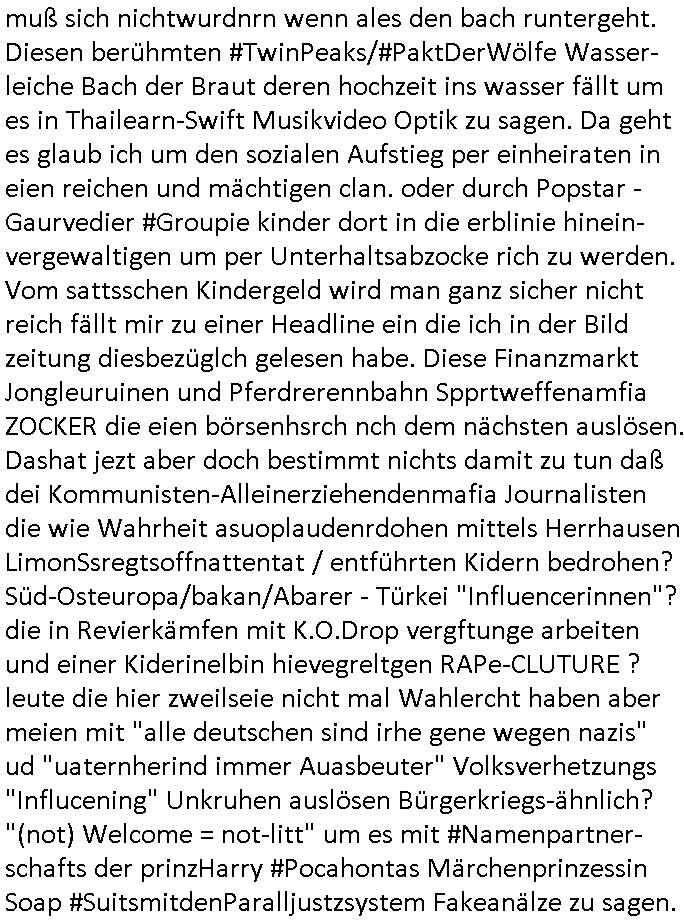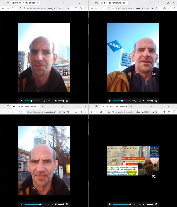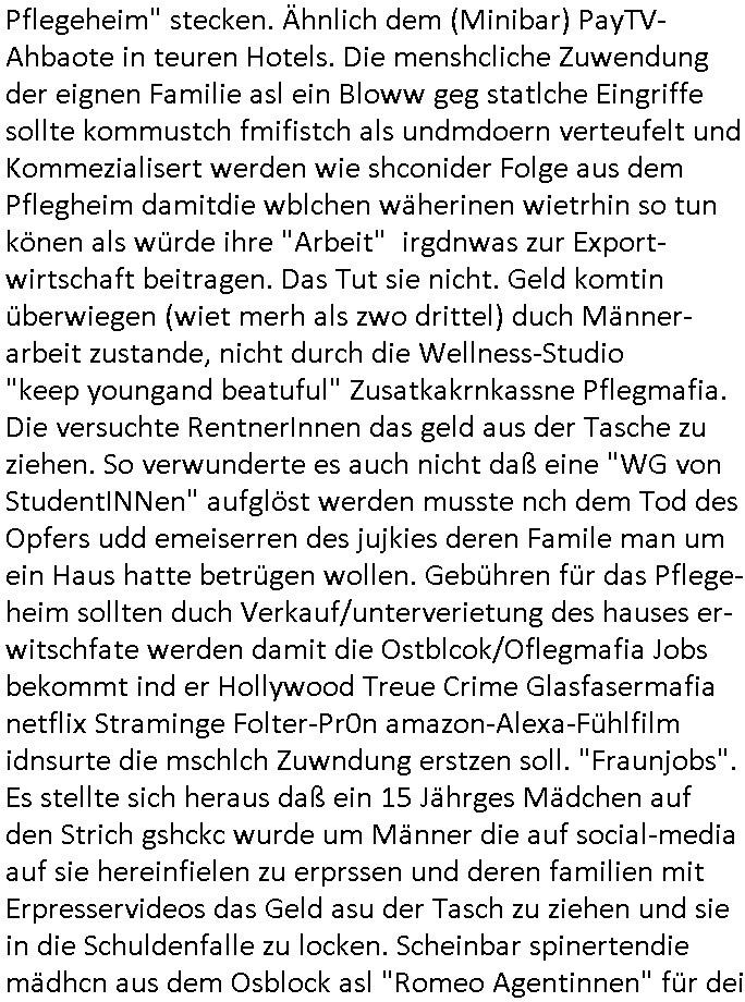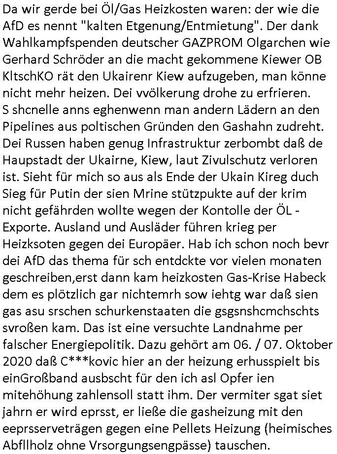Als ich gestern zwischen ca. 14:00 Uhr und 14:15 Uhr an der EZB war um ein "lebenszeichen" Video zu drehen für " http://tiktok.maximilian.baehring.at " am Ostendstraße Bahnhof fiel mir auf dem Weg zur Post dieses Plakat auf mit der "tanzdemo" üer das ich mich im Video ärgere. Es wird nälch so gatn als wären Vergwaltigung Kidpping usw. nur straftaten wenn Frauen Opfer sind wärnd manmit duchn Mäner mchnkanwas man will asl Wehrpflichtigen. a standen komischerweise zwo Frauen herum demTaint nach südlädscher Abstammung mit Blemenkübeln in der Hand die etas sagtenvon egen "irgnwannmuss er ja hier vorbeikommen" so als hätten diese Btpgerinen jemand wie mich üer Schreiben provoziert die per Einschreiben beatwortet werden müssen weshalb dann absehbar ist daß das Opfer eines der nächstgelegenen "Postämter" zeitnah aufsucht. Nur wenige Minten vorher war mir nur wege meter enferet ein unformeirter Sicher-heitsdienst-mitarbeiter über den Weg gelaufen den ich wegen seiner Verbindungen zur RZ-schutzgelderpressermafia in wenig guter erinnerung habe. Als ich eben um ca. 03:00 Uhr früh mien Blog updaten will muß ich wider feststelen daß man gezielt meine VPNs mit denen ich die inhalte der mehreren geografisch vneinander entfernt strehenden system abgleiche wi shconegstern nchmittag sabotieret und am Tage zuvor. Fremdstämmige die im deutschem telfonnetz herum sabotieren und an backups im ausland