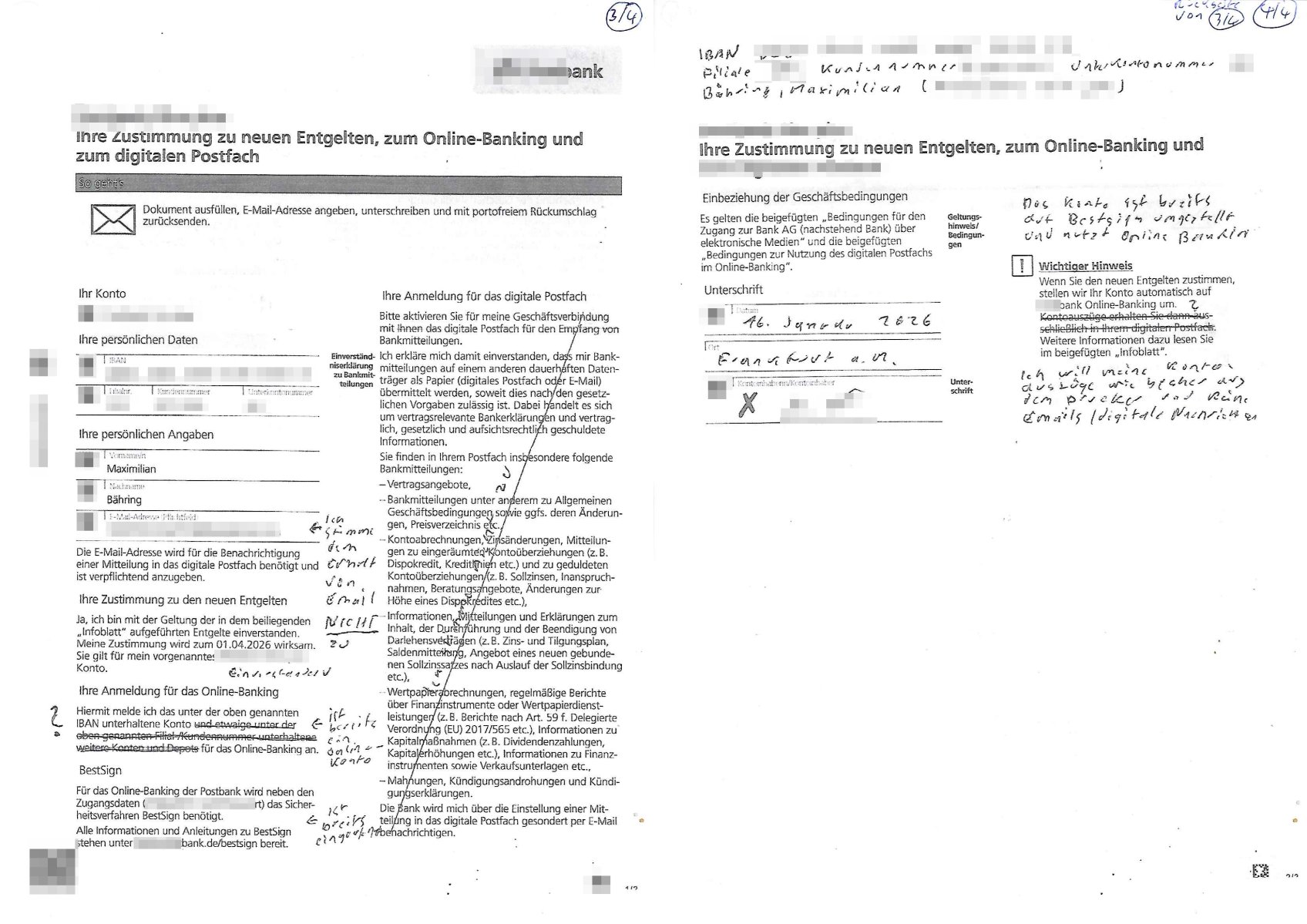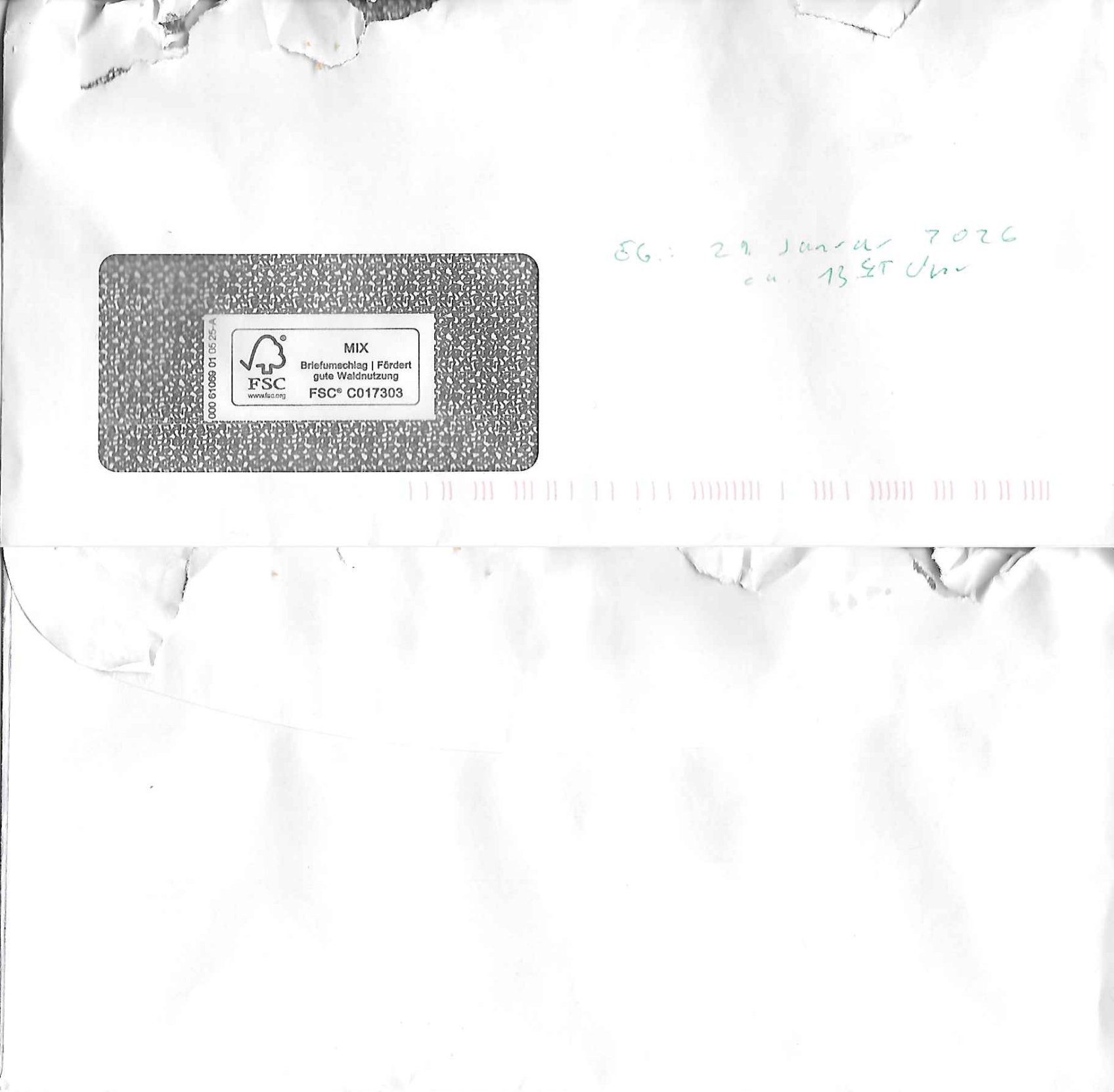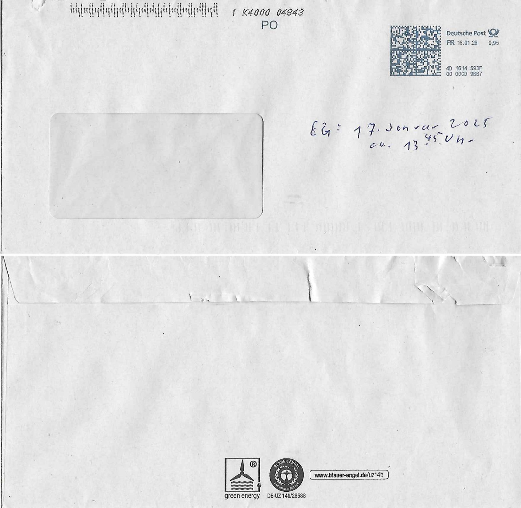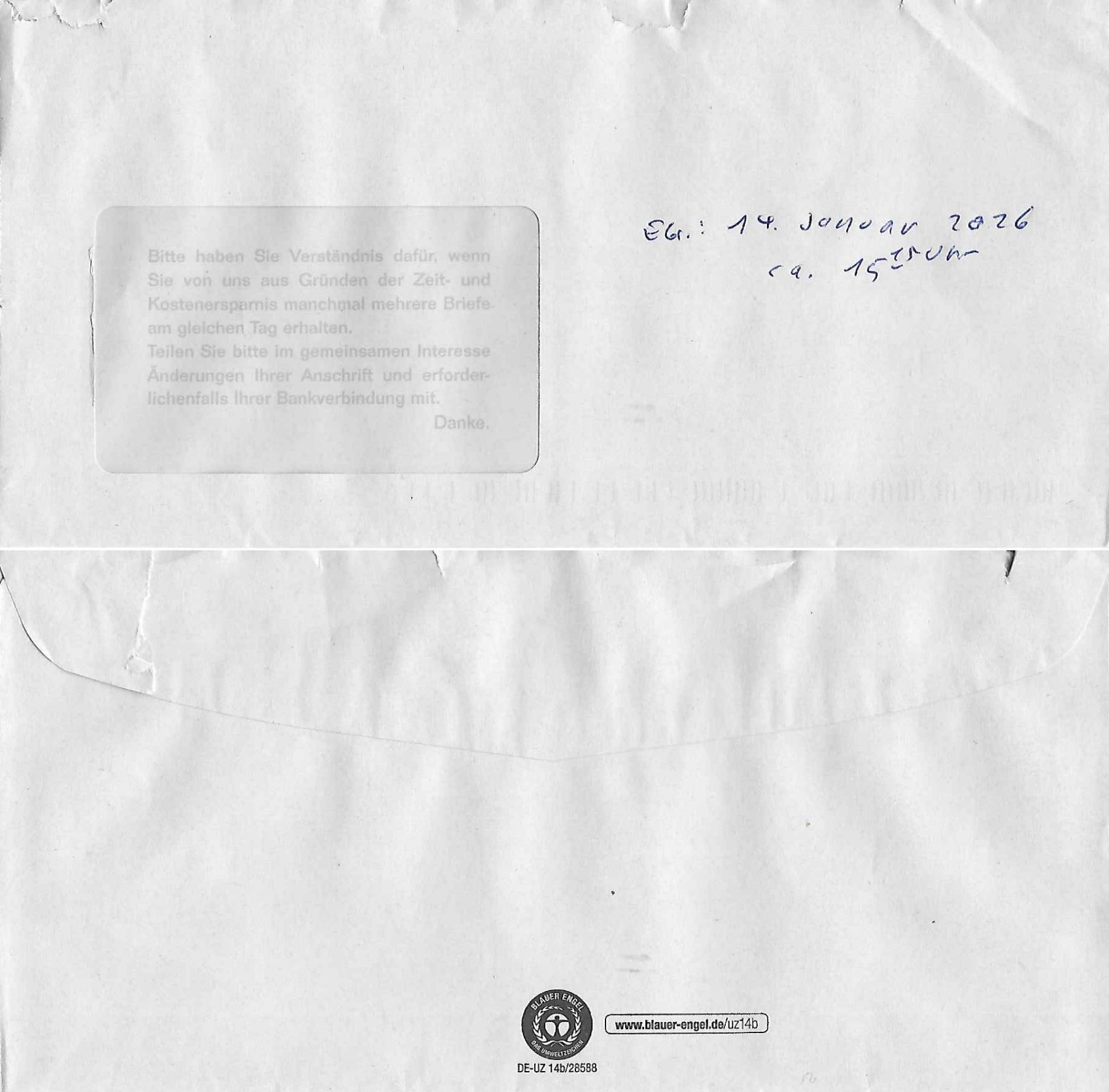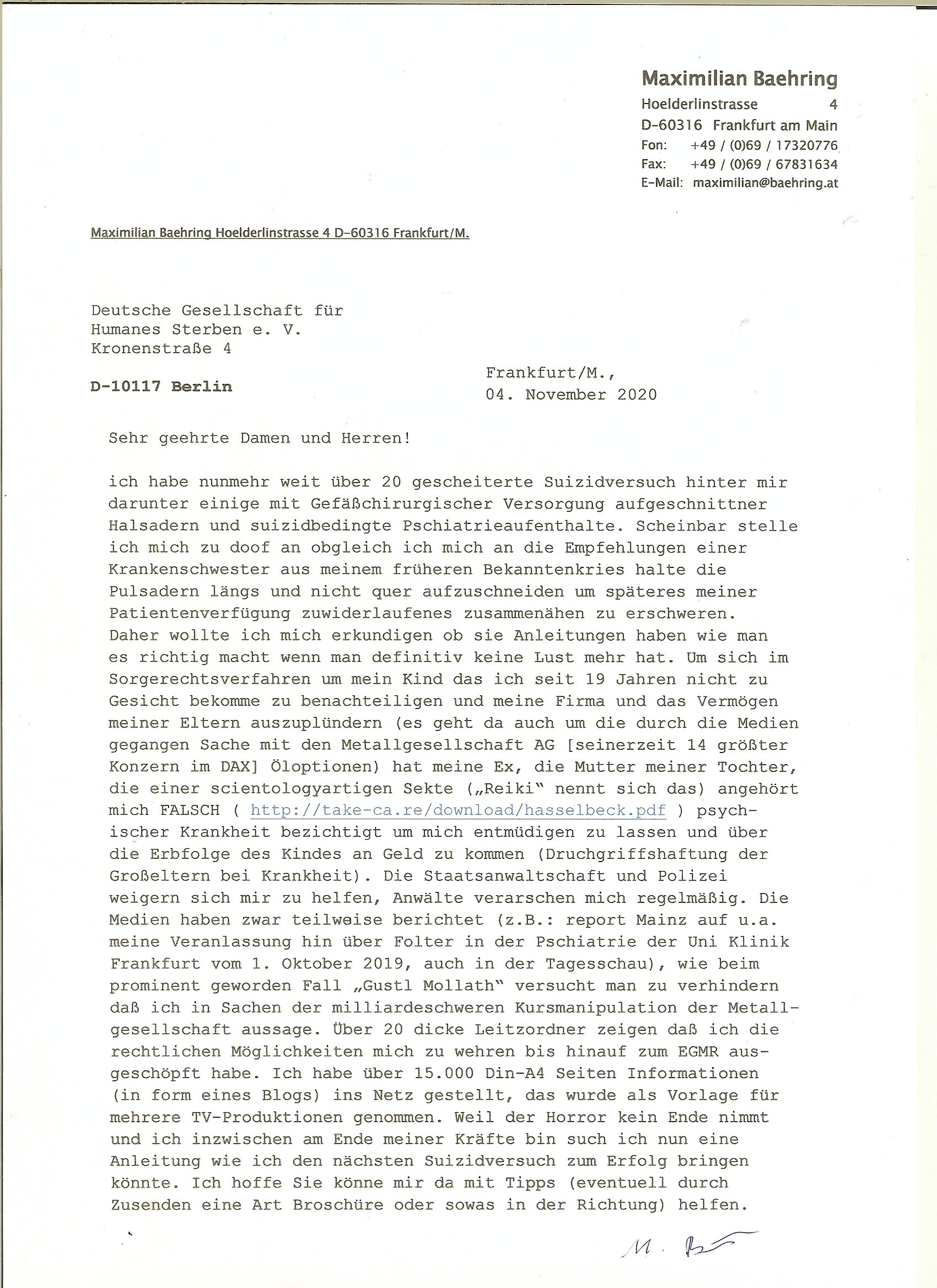 Letztmalig am 18. Januar 2026 hatte ich mit ihrem Hause Kontakt, von 08:54 Uhr an diesem tage daiert mein Telefax an ihre Frau Behrami +49/(0)69/567006-99-892 der 18. Janaur 2026 war ein Sonntag an dem die Postfilialen geschlossen waren. Als Einschreiben (Einwurf) ging der vorab per faxe gesendete Brief somit erst am 19. Januar 2026 an sie herus die Nummer der Sendung ist RT 2557 6110 9DE.