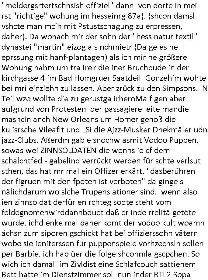 #Simpsons Fatsby "diss rap" "rammstein" ritterrüstung. ich mienwiepackt mansowas um ien webrpause für den "mc donalds" chili-fastfoode das so scharf ist daß die (medizinisch begleiteten) testesser davon diese "es ist wirk-lich war" tränen in den augen haben? und jetzt ZDF TV Autorinnen bleistifte angespitzt: wie macht der Hund?