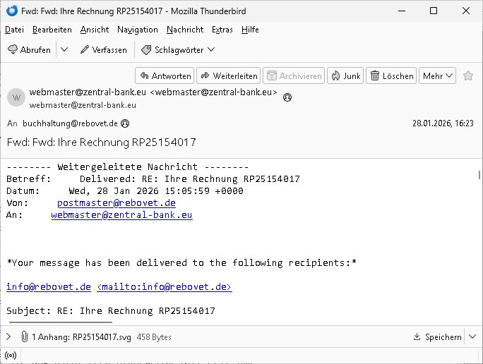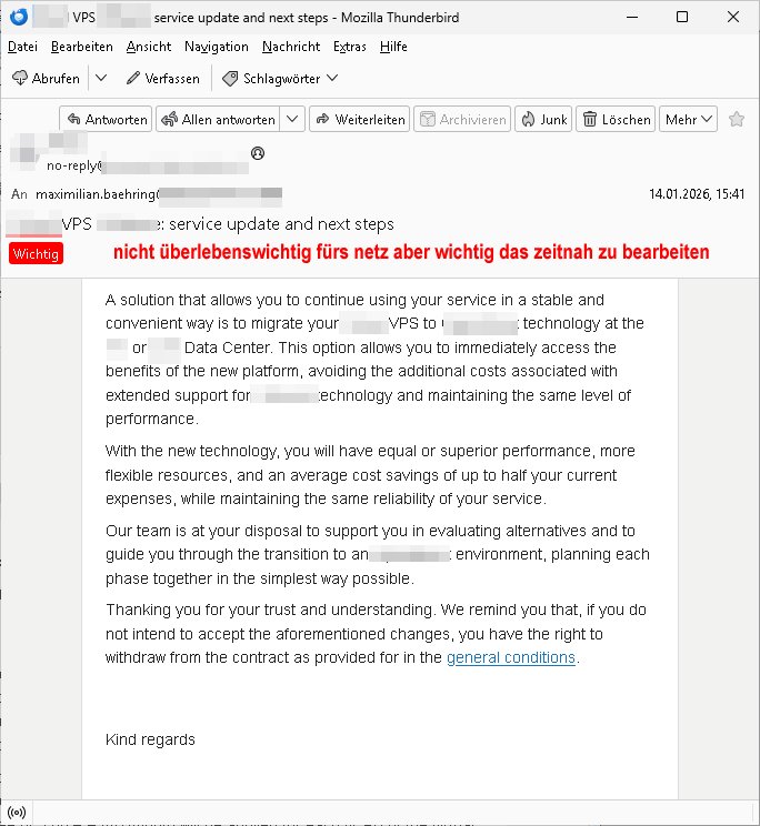 Schon am 18. Januar 2026 hatte ich bemängelt daß es ein DIN5008 Diktatazeichen (damals noch „RN1899474“) mit Nummer „1899474“ in meiner Korrespondenz mut Ihnen nicht gibt.