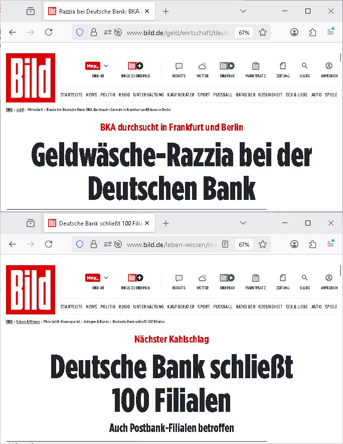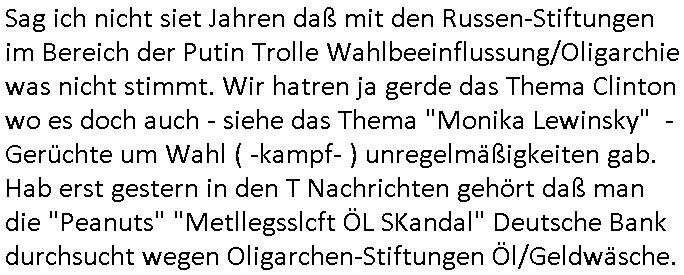 Hat außer mir noch jemand gehört (siehe Bild Zeitung zur Hausdurchsucugng bei der deutschen Bank Frankfurt/M, Niederlasung der Postbank) was "AcKer-MAnn's I-t"/EDV angeht das "Scott McNally"'s SUN "das licht ausknipst"? Es gab da mal so ne "Pet-Shop-Boys" lustige Tier-Video- Clip-Show "Zoo/Europae.." mit RECHNUNGDRUCK für die (wer war) Chefin der "Stiftung preußischer Kulturbesitz"? [jüdisch/adeliges alteigentum Ost?] etwa zu der Zeit als Kammersäger lindmann (Rammstein) "Sonne" erschuf.