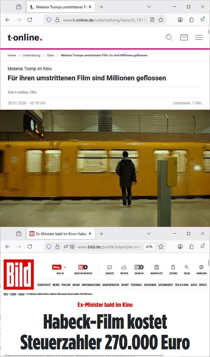 Der Bundesrechnungshof und Bund der Steuerzahler haben Kritiken zu Habecks Film veröffentlicht der quasi ein schnäppchen für die filmlförderung war vergchenmit der kohle die Melania Trump für Medienarbeit raushaut.