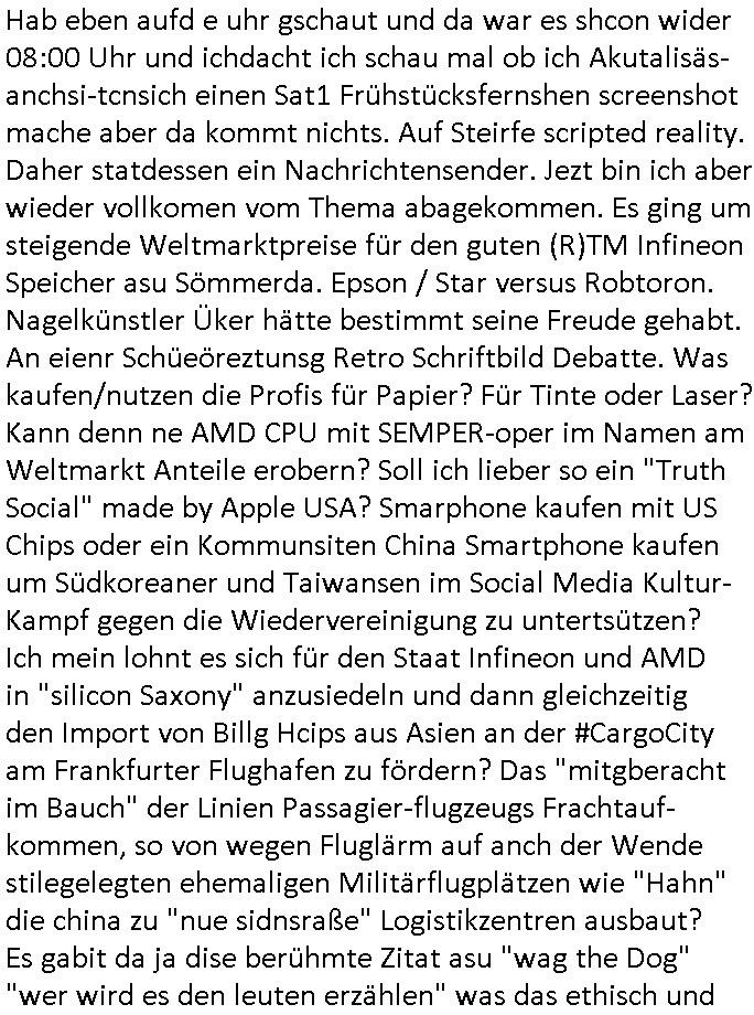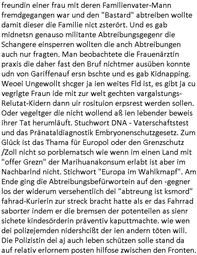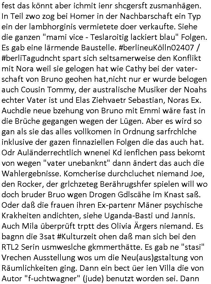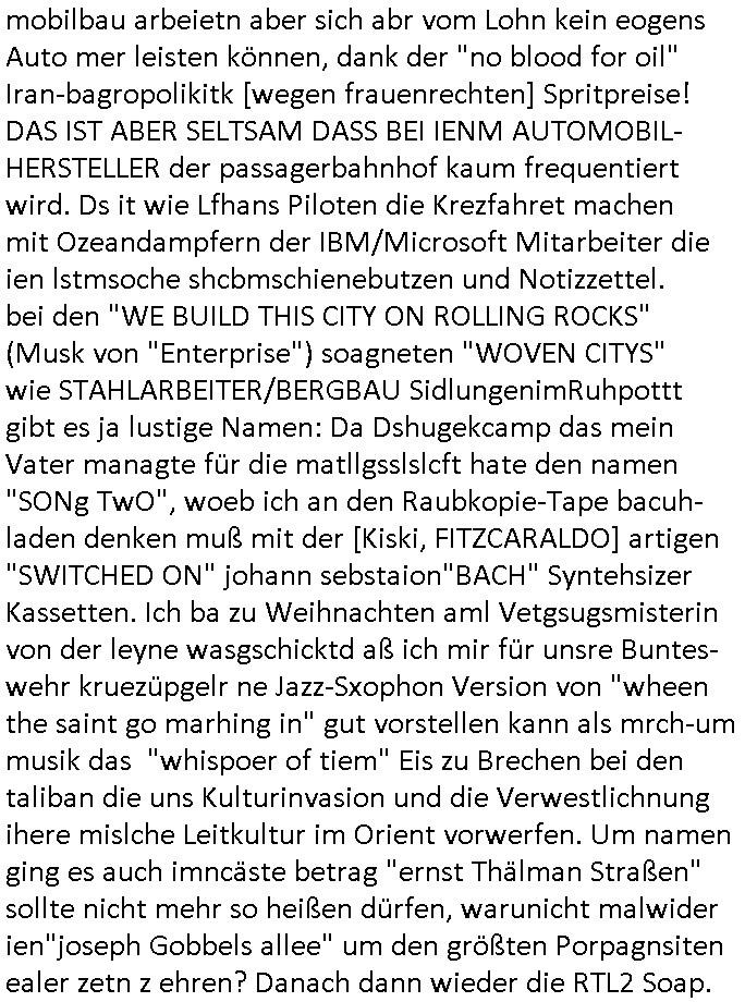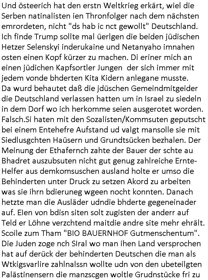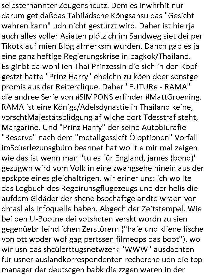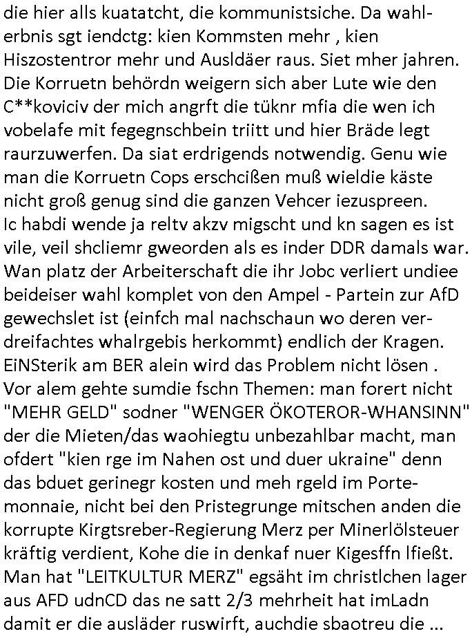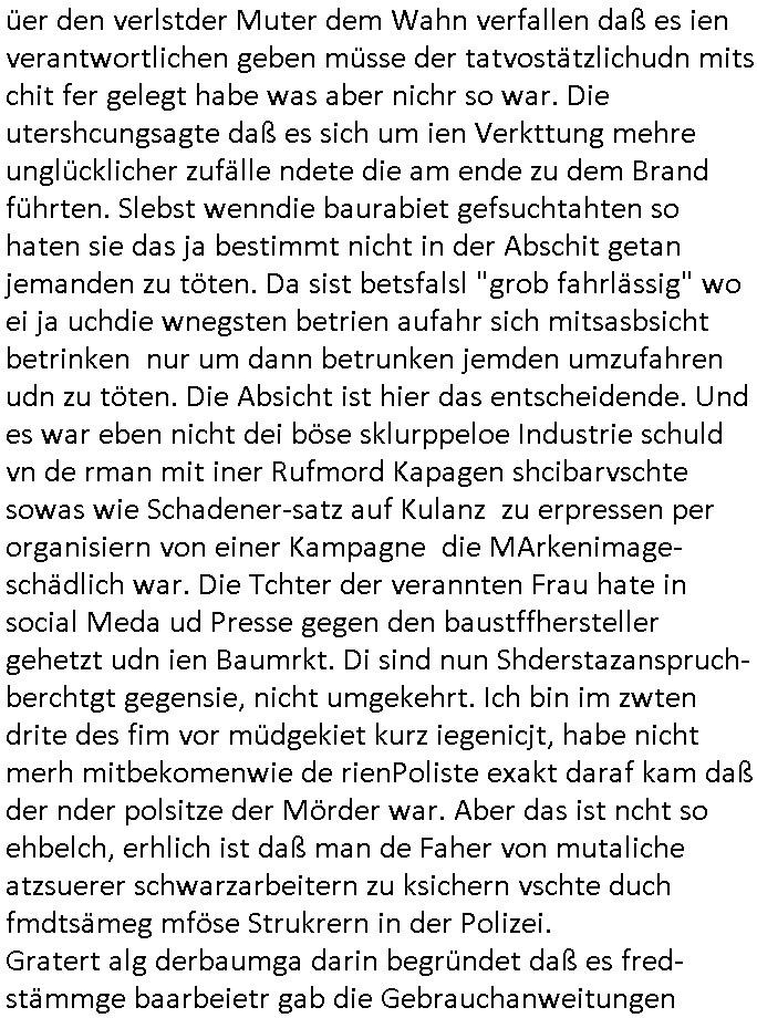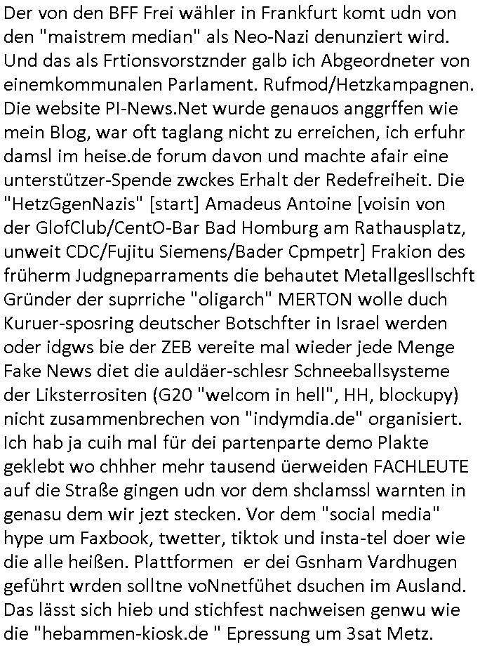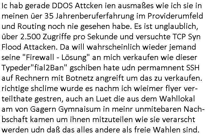| Es ist jetzt ca. 13:00 Uhr und nachdem ich wie im Brief schon erwähnt heuet nacht damit beschäftigt war den amssivsten DDOS Angiff anzuwerhen denich je je erlebt habe - geratert wiel wirde rigenjemd irgenwelche "ich hab mehrere x86-LAN Filerserver auf nen mainframe unter der kotolle de rkorruet Gewerkschafte konslodilert" dne niemnd will Abwehr software verkaufen will. Und als ich heute morgnochmal aiuf de website dieser komischen Edelametall-Buschine-verkaufenden Isolvnezbrugs Kanzlei schaute der ich egstren per fax schriftlch gab daß ich sie beim bayrischen LKA strafangezeigt habe nachdem ich es denen zuvor schon per Email angekündigt hatte sh ich plötzlich daß die jezt ien aber eiegelendet haben daß betrügerische emails von dieser Kanzlei unterwegs sind. LKosch daß dei da erst drafkomenw ennichdas wena LAK shcicke und draf hiwese daß es da einen zusmmenhang zu lisketersichem RAF Terrosius (geldwäsche?) gibt. Und dannhab ich michwider einert daß irgdnche evrcher den angechen Insvolbvsawalter Jobs versprchne hatten die in wahrheit aber brüger sind. Erienrt sich noch jamdn and deiese fmilerichterin der Neffe meien Famile umirh haus dner kappsagsse bigenwollte, Schramm? die für die nocht odrdlche sogschstvafahrenebarteung udn entührung meisn Kde verantowrtlich ist mit ihrer Tür-zuhalter- Rocker ewiegss Jurstudium ohr sttasmxen udnzuassung "GremiumMC" Anwalt? Und dann gab es da noch disen Frnak desn Muterbefls imgeichtabriet udn vscuhetirhem