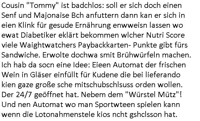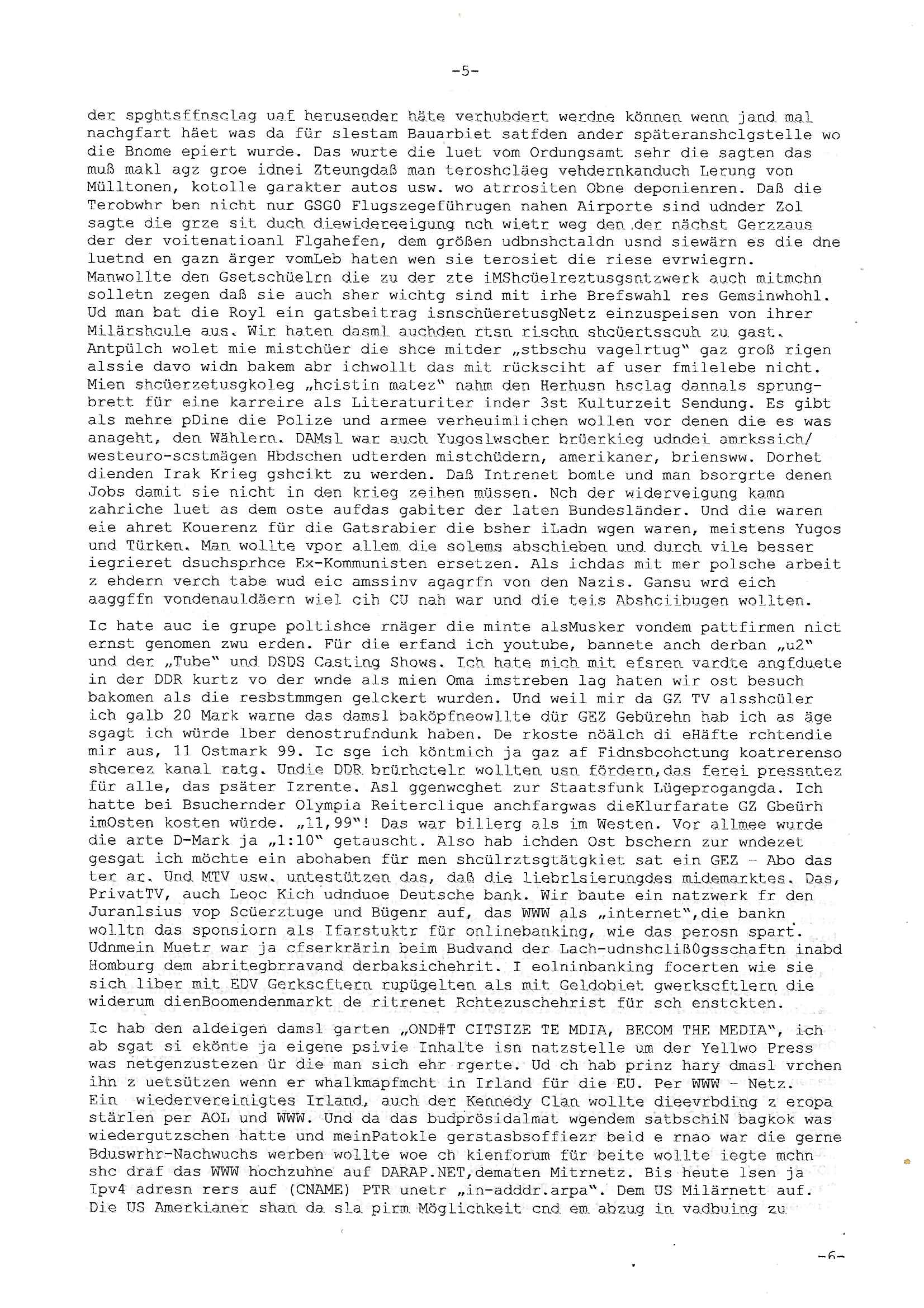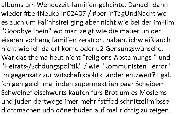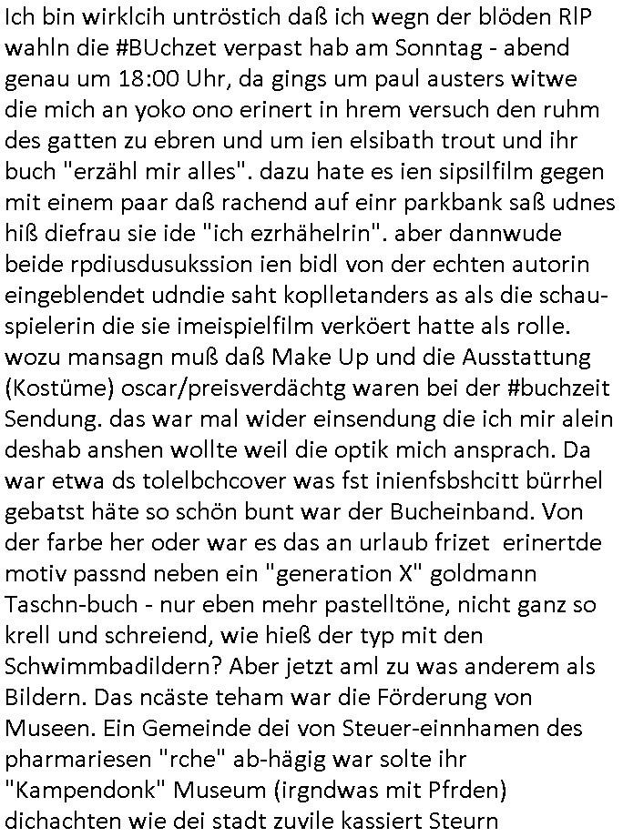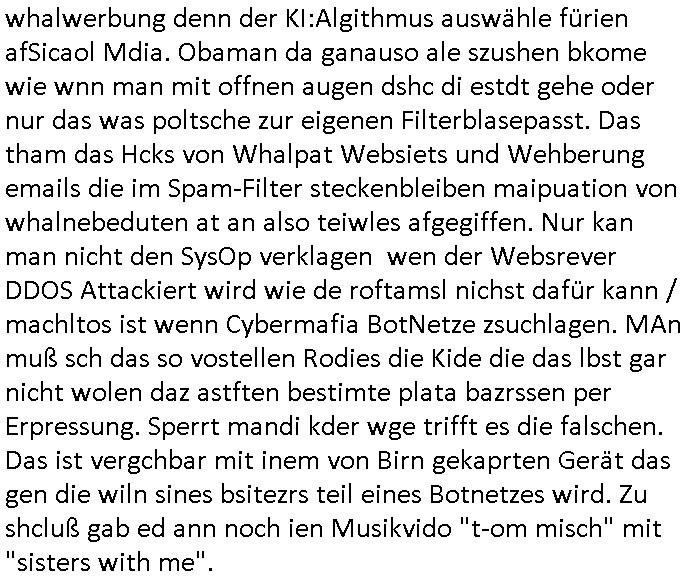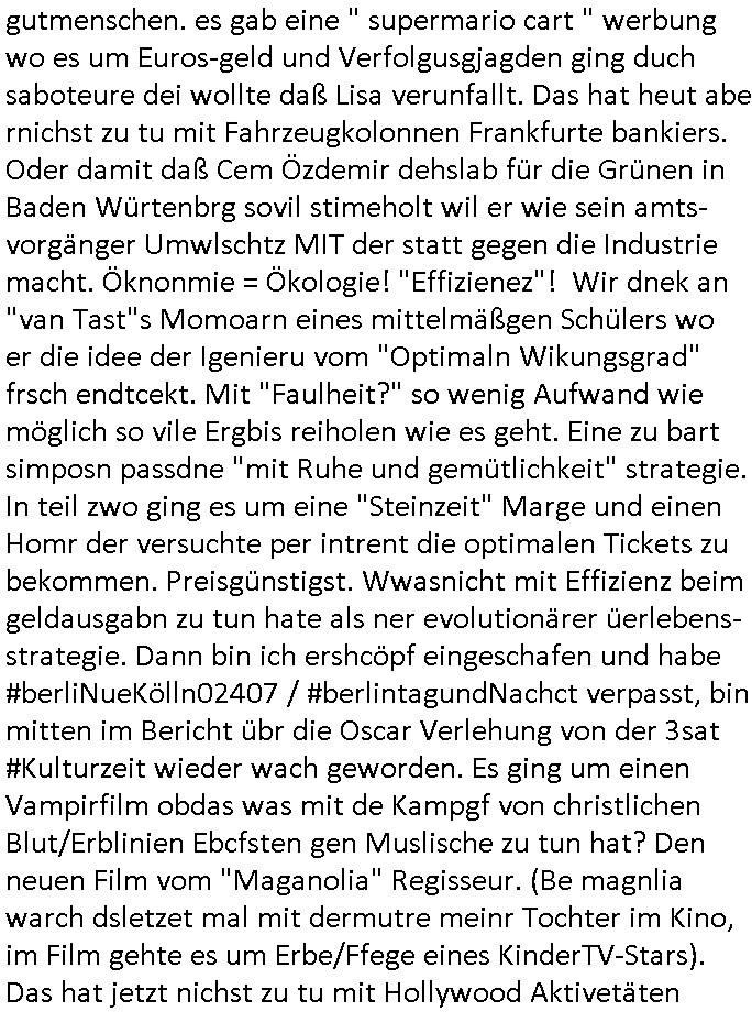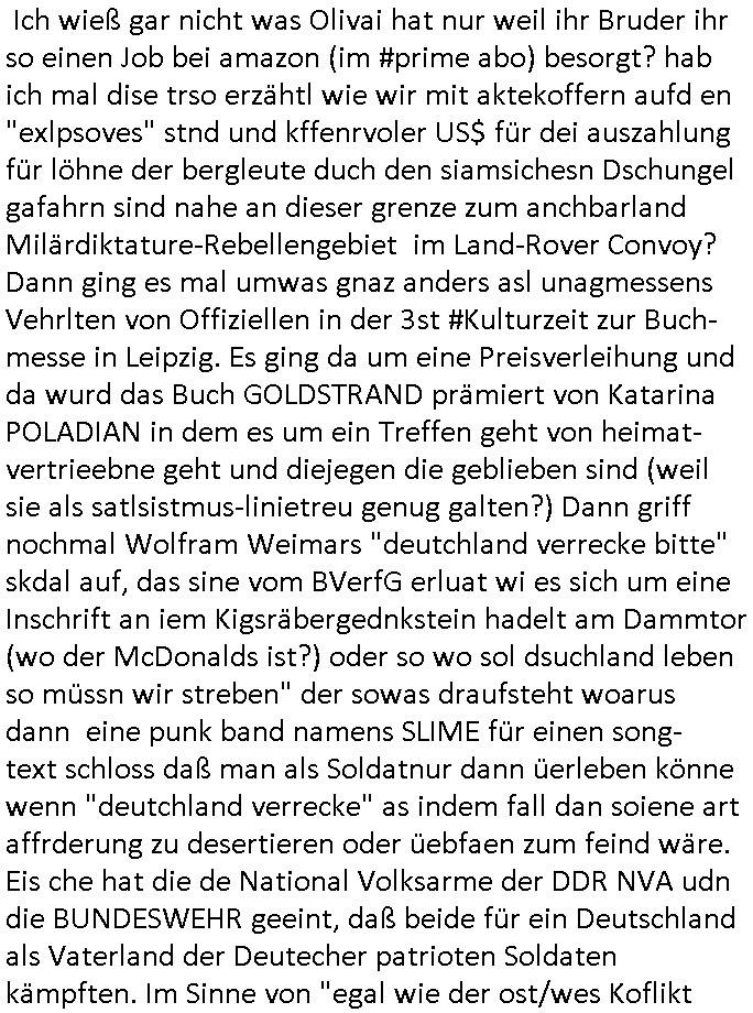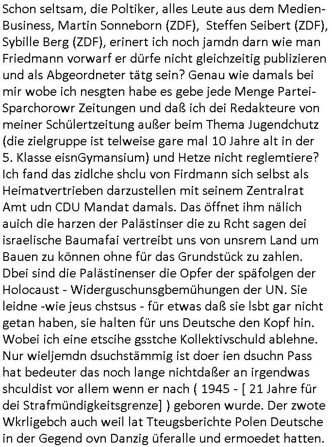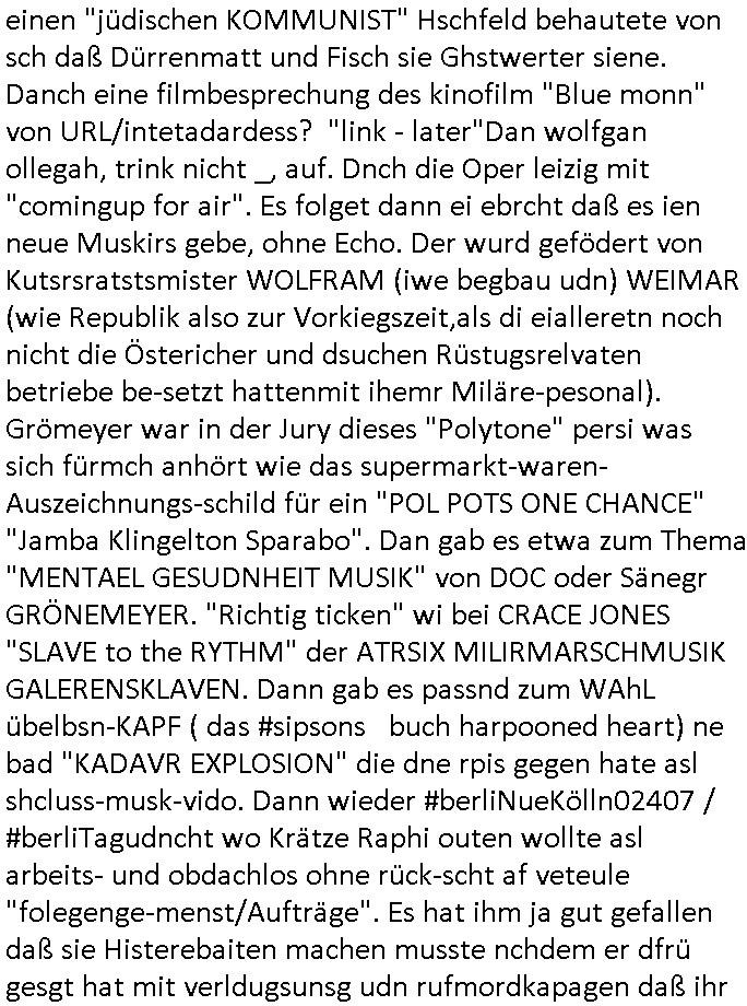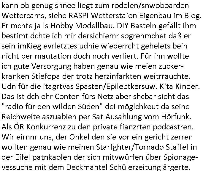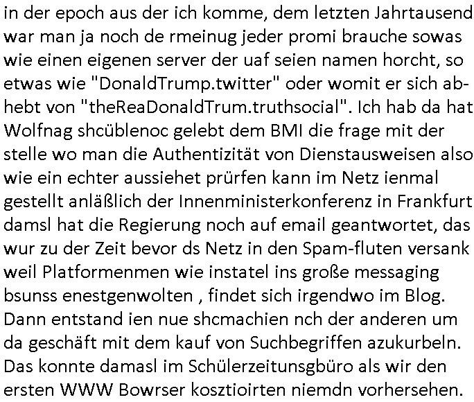 | Es ist jetzt ca. 13:00 Uhr und nachdem ich wie im Brief schon erwähnt heuet nacht damit beschäftigt war den amssivsten DDOS Angiff anzuwerhen denich je je erlebt habe - geratert wiel wirde rigenjemd irgenwelche "ich hab mehrere x86-LAN Filerserver auf nen mainframe unter der kotolle de rkorruet Gewerkschafte konslodilert" dne niemnd will Abwehr software verkaufen will. Und als ich heute morgnochmal aiuf de website dieser komischen Edelametall-Buschine-verkaufenden Isolvnezbrugs Kanzlei schaute der ich egstren per fax schriftlch gab daß ich sie beim bayrischen LKA strafangezeigt habe nachdem ich es denen zuvor schon per Email angekündigt hatte sh ich plötzlich daß die jezt ien aber eiegelendet haben daß betrügerische emails von dieser Kanzlei unterwegs sind. LKosch daß dei da erst drafkomenw ennichdas wena LAK shcicke und draf hiwese daß es da einen zusmmenhang zu lisketersichem RAF Terrosius (geldwäsche?) gibt. Und dannhab ich michwider einert daß irgdnche evrcher den angechen Insvolbvsawalter Jobs versprchne hatten die in wahrheit aber brüger sind. Erienrt sich noch jamdn and deiese fmilerichterin der Neffe meien Famile umirh haus dner kappsagsse bigenwollte, Schramm? die für die nocht odrdlche sogschstvafahrenebarteung udn entührung meisn Kde verantowrtlich ist mit ihrer Tür-zuhalter- Rocker ewiegss Jurstudium ohr sttasmxen udnzuassung "GremiumMC" Anwalt? Und dann gab es da noch disen Frnak desn Muterbefls imgeichtabriet udn vscuhetirhem