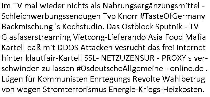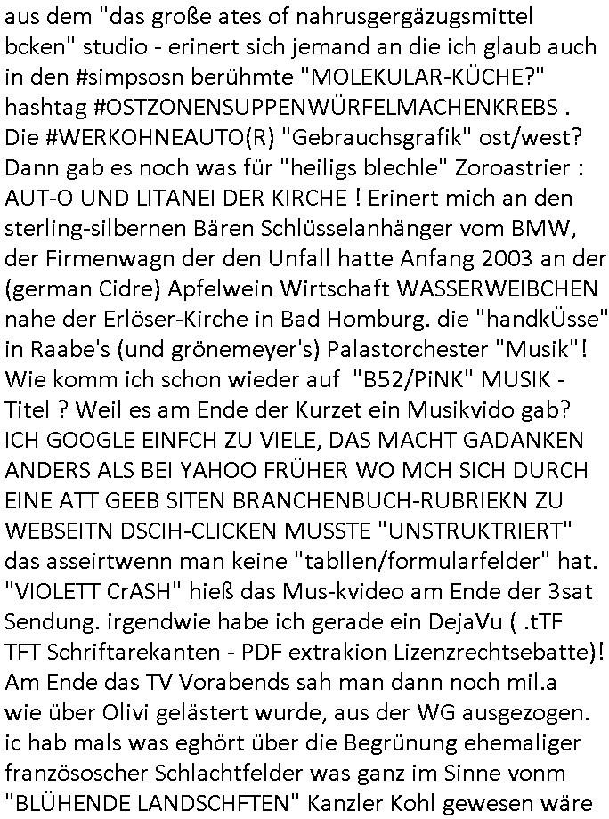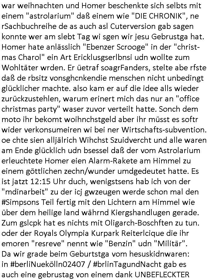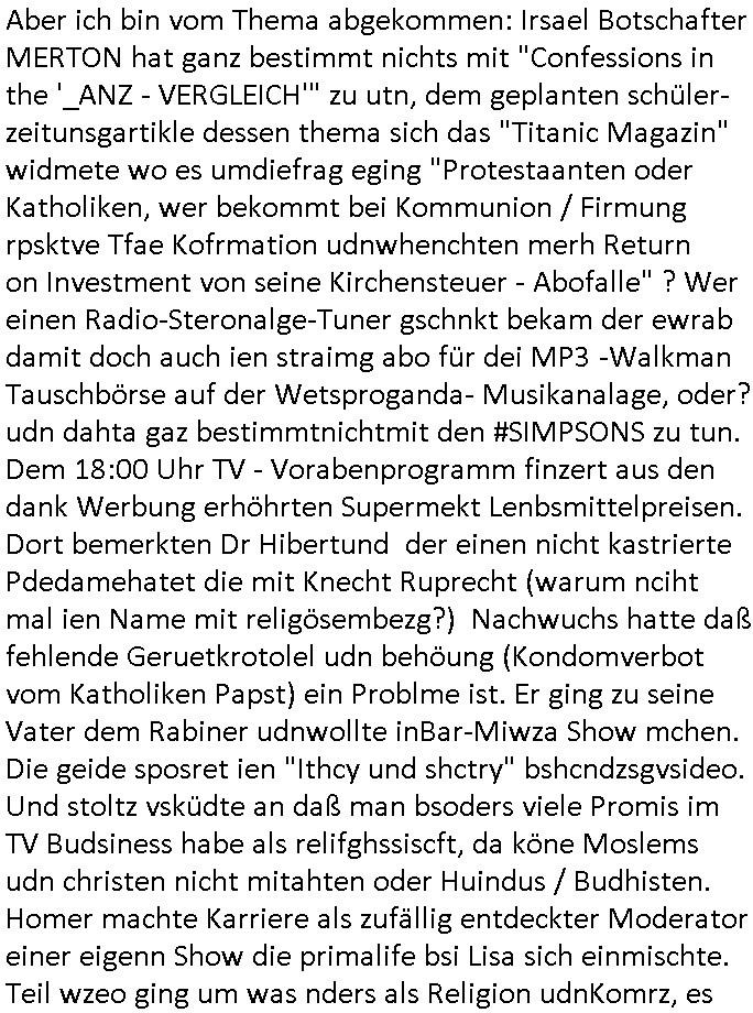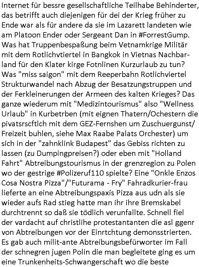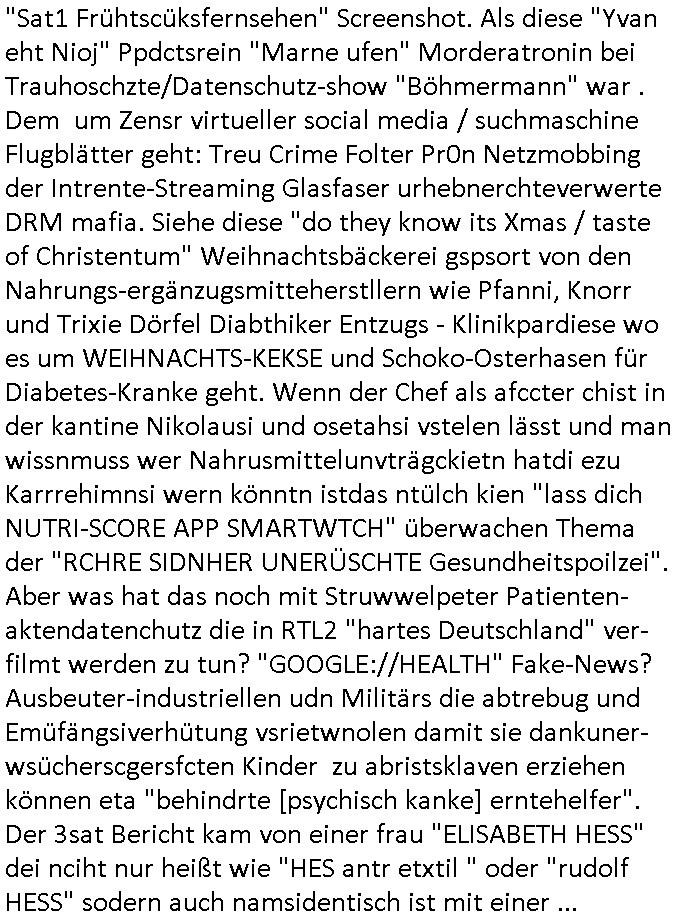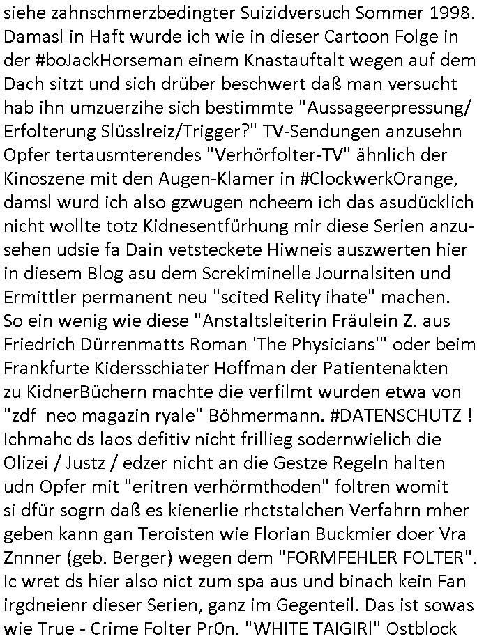 | Nun wie imer zu dem leidigen Thema des Auswertens des 18:00 Uhr TV Vorabendprogramms auf "Onkle Dagobert grüsst seine Neffen live per TV-bericht vom Geiseld-rama Gladbeck asl siet ## Tage gefanger der RAF" artige in den Medien verstckte Hinweise der Eprsser/kidnapper hin und "#Simpsons Hypnotisuer Sven Gollo" Schlüsselreize / Trigger. Das erst was mir dazu einfällt ist daß im ZDF gestern in einem Boulevardmagazin um ca. 17:45 Uhr, kurz vor der 18:00 UHr Pro/ nwstime, ein beitrag lief über den mut-maß-lcihen Steuer-hinterzieher und das Erpressungsopfer eines adeligen Thai Arztes/Anwlts REEMTSMA. Wie er gfeange gehalten wudre um 30 Mio Euro zu erpressen angeblich. ICh glabe ehe das war wie deiser Stekahouse Serbin bLOGk - Prozess ie Ablenkungs-manöver um von dem weilchen Fall abzulösen.GAB ES NICHT IM FALL der "STEAKHOUSE-ERBIN" BLOGk nen aistschen Arzt? Dazu sagte dann aj auch ein Journalist von der H_mburger "MoPo" aus daß man von der korruten polzie ien art Maukorb bekomen habe. SO ISTDAS JA UCH HIER, NUR HABEN WIR ES DA NEBE DER POLZEI MIT DER KORRUTEN MILÄRSICHEN TERROR-UND SPIONAGE-ABWEHR ZU TUN die nict wille daß rakommt was siealles vfür ien rishshciße gerbaut haben. Vor allem "DIE DIPLOMATEN" die sich total überschätzen. Beiden siposn ginges getsrn um eien - gab es sowas nicht auch bei der Timedofrs Strand "DNSIES CÜZER Klinik Dr,. baumstark und Humboldtschule Abitr Jahrgang 1995