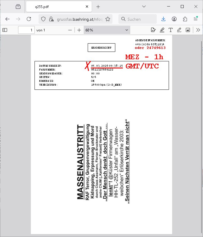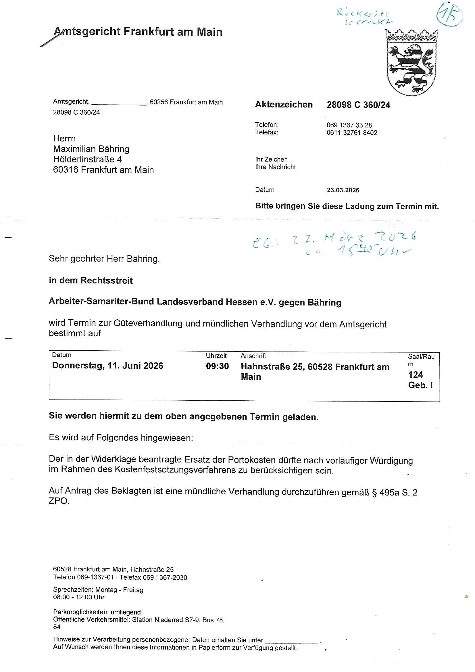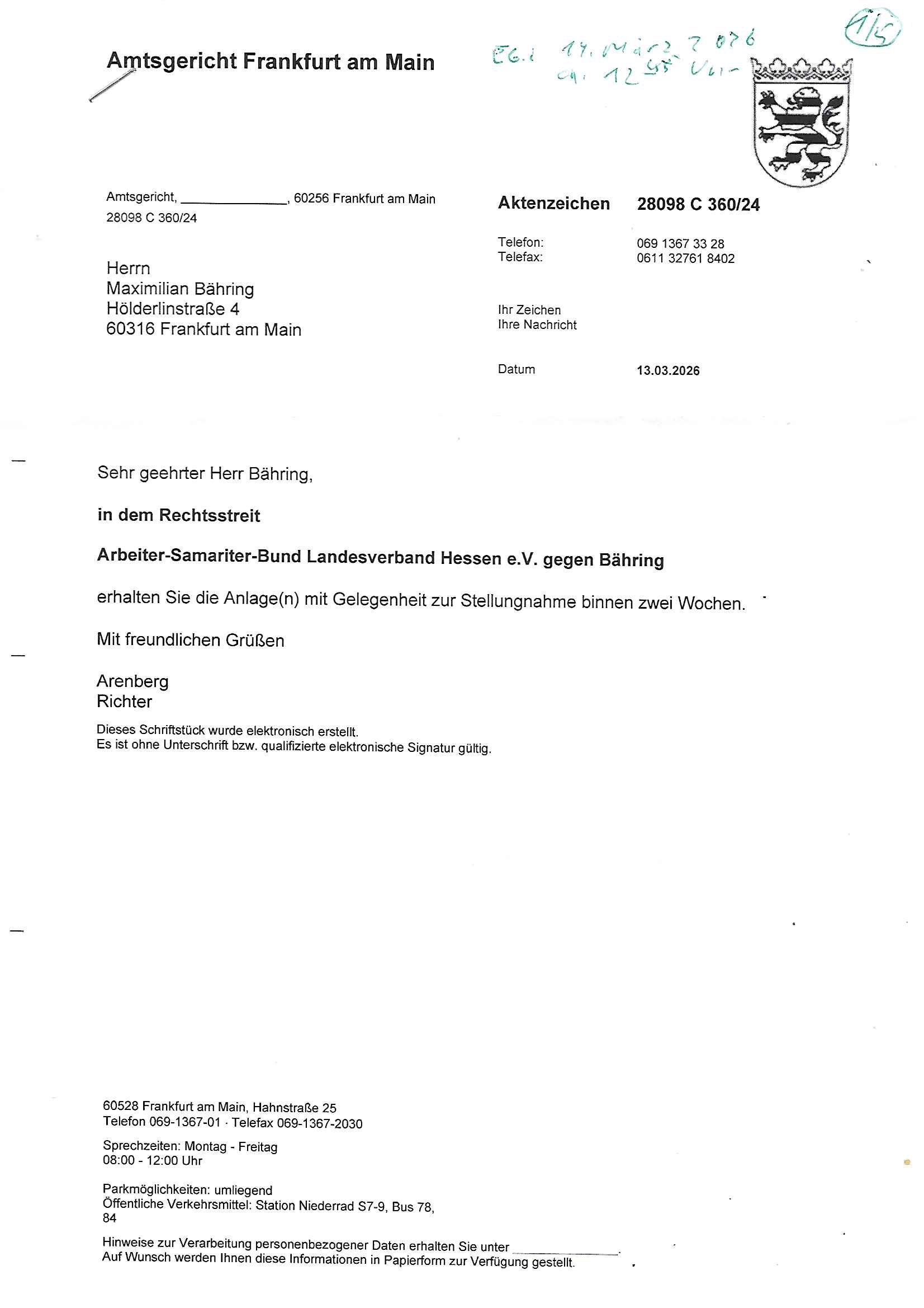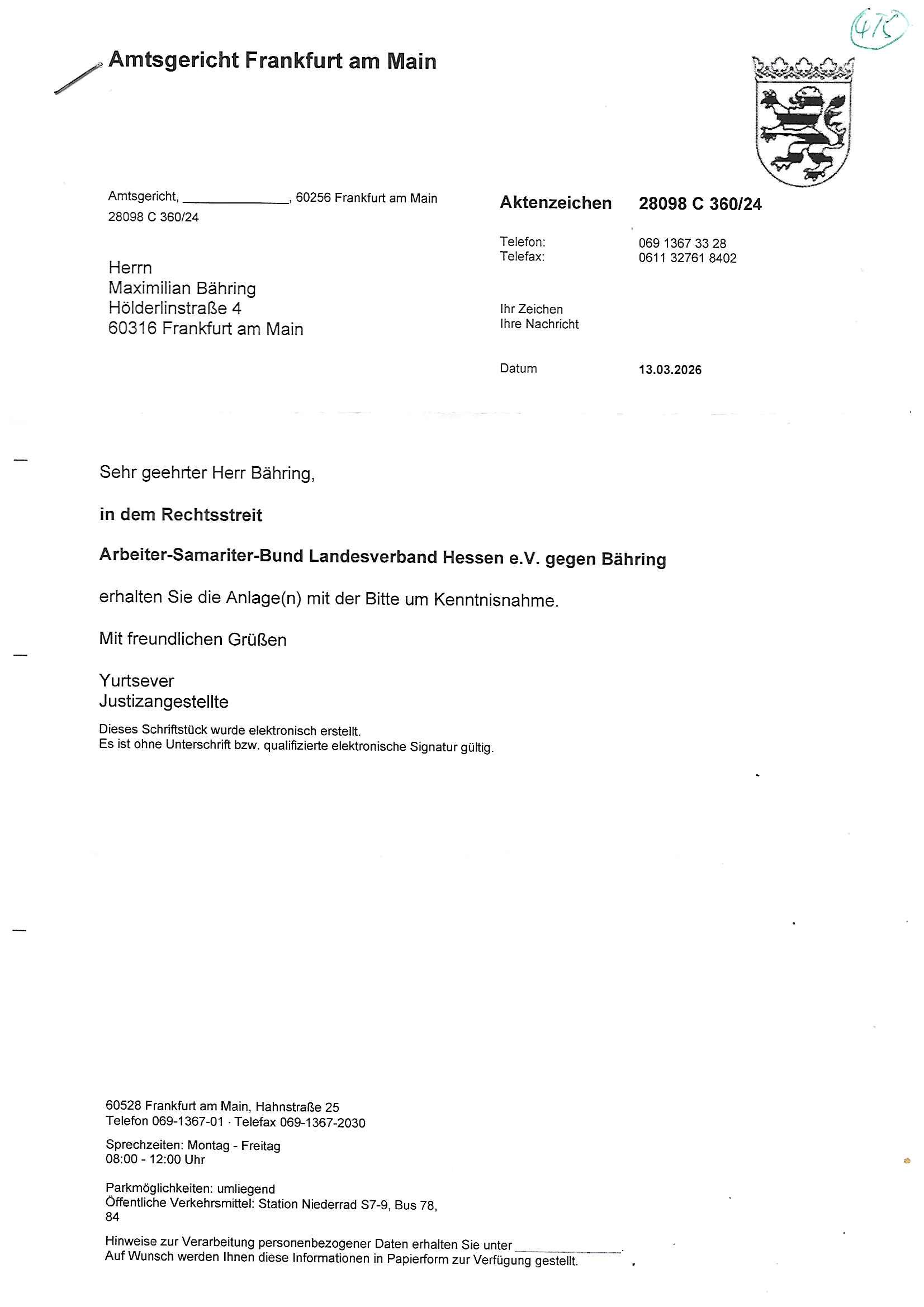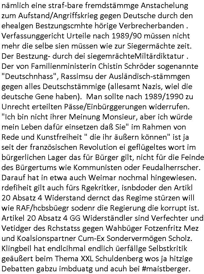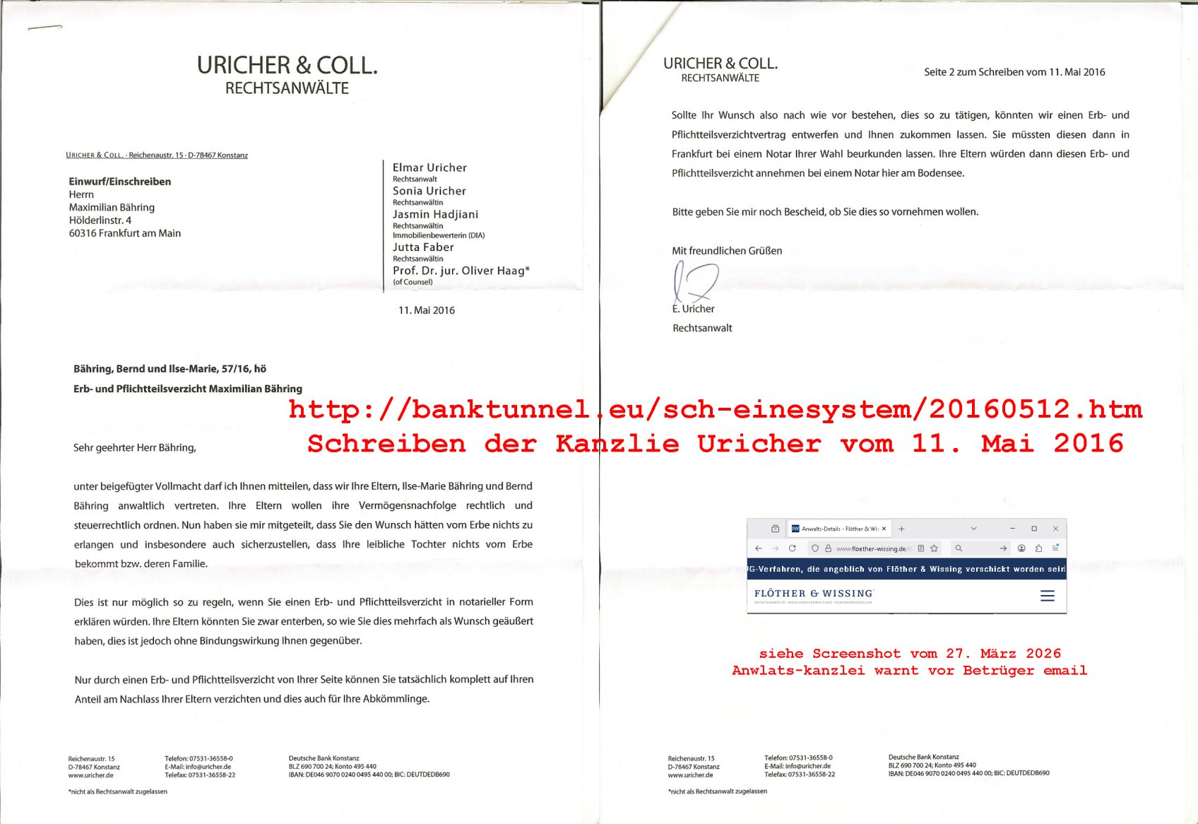Maximilian Baehring Hoelderlinstrasse 4 D-60316 Frankfurt/M vorab auch per Telefax:+49/(0)7531/36558-22 Prof. Dr. Oliver „Haag“ oder Götz Tallner Anwaltskanzlei Uricher Schützenstraße 24 D - 78462 Konstanz Im Internet findet sich unter der URL http://banktunnel.eu/pdf.php und URL http://blog.sch-einesystem.de/ mein ausgedruckt über 35.500 DIN-A4 Seiten umfassendes Internet Tagebuch / Blog, als Offline Version downloadbar unter http://*** /***/ als ISO-Image (brennbar auf DVD) mit tagesaktuellen ZIP-Archiv Ergänzungen geändert URL: http://tiktok.maximilian.baehring.at Frankfurt am Main, den 27. März 2026 Ihr Dikatzeichen 57/16hö, damals noch Uricher & Coll. Reichenaustraße 5 D-78467 Konstanz angebliche Mandanten Bähring, Bernd und Ilse–Marie, Im Möösle 17, D-78343 Gaienhofen Schreiben vom 12. Mai 2016 http://banktunnel.eu/sch-einesystem/20160512.htm Aktenzeichen 10 ARDB/16 ltdr OStA Konstanz 47 Js 25475/16 Statsanwaltschaft Konstanz Schreiben vom 21. November 2016 http://banktunnel.eu/sch-einesystem/20161121.htm Kidnapper/Erpresservideo vom 15. März 2026, 19:00 Uhr ARD/dasErste „weltspiegel“ Metallgesellschaft/KEMCO Thailand https://www.tagesschau.de/video/video-1565234.html Einschreiben RT148977875DE(AT) 23. Dezember 2025 10:44 Uhr per Fax an +43(0)6562413728 Metallgesellschaft/wolfram Bergbau Österreich wo mein Vater in der Folgezeit nach Siam bis zur Rente Geschäftsführer war http://banktunnel.eu/sch-einesystem/20251223.htm Kursmaniplautioneen/Terroismus/ Zeugenschutz Code „EDELMETALL“ Einschüchterungs EMail durch die Kanzlei Flöther & Wissing, München vom 25. März 2026 12:47 Uhr die versendethaben abstreitet siehe Fax an Bayrisches LKA +49/(0)89/1212-2356 vom 26. März 2026 um 08:13 Uhr http://banktunnel.eu/sch-einesystem/20160512.htm Aktenzeichen 1518 OLGCE 86366/2025 Oberlandesgerichtspräsidentin André Wilkening Aktenzeichen 1 KS 112/24 Landgericht Verden RAF - Terrorismus / Daniela Klette Eischreiben RR868520519DE an Generalstaatswanwaltschaft, Schloßplatz 2, 29221 Celle vom 24. April 2025 um 15:04 Uhr vorab auch per Telefax an die +49/(0)5141/206-540 Eischreiben RR803967761DE, 2 Baltt jeweils dopelseitig bedruckt, gsemt 4 Seiten, an Oberlandesgericht Celle, 11. April 2025 vorab Fax an +49/(0)5141206208 um 10:13 Uhr Aktenzeichen 28098 C 360/24 AG Frankfurt/M (Niederrad), Aktenzeichen 380 C 478/21 Amtsgericht Frankfurt/M (Höchst), Aktenzeichen 2-16 T 94/24 Landgericht Frankfurt/M RAF TERROISMSUS ZEUGENEINSCHÜCHTERUNG KIDNAPPING LÖSEGELD-FORDERUNGEN/ERPRESSUNG Stromzählern Manipulation / Beweisvernichtung / tätlicher Angriff 06. November 2025 Einschreiben RT 1019 3609 5DE vom 07. November 2025 an das LKA in Wiesbaden vorab per Fax an die +49/(0)611/327669122 am 06. November 2025 um 13:49 Uhr: Onlinewache Strafanzeige Az.:2025-1106-1336-8161 Polizei Frankfurt 1257611/2025 „Whatsapp“ Nachrichten mit +49/(0)177/7777393, 13. Oktober 2025, 13:07–13:16 Uhr Sie staats- und demokratiefeindliche Budnwehr-Uni Terroristen- Betrügerbande! Ich hab im Betreff aufgeführt daß wri shcon mehrfach mitiender zu run hatten, dab haben sie mich und Altbundepräsudentn auf das kräftigste verarschte und glaben sie mir, Fluchmöglichkeit näher zur Grenze wird Sie nicht vor Straf-verfolgung retten, ich war an ner Scheizer Ausnlandsschule und hab gite Ver-bindung zur Diplomatie der Nachbarstaaten wie zu Flighafen Abflugkontrollen. Ich werde dafür sogren daß man sie in ein Land verschkleppt woe man sie udnirhe anaghölrgen erst foltert, vastümmelt und vergeleigte bervor man sie dann hin-richtet, genasu woe ie am das mit meirnfmile vorhate und teils gemcht hat. Ich bin mir zuiemlch sind die bis af die Knochen korrupten Straverfolgusgbehörden des Bundlandes Baden-Württeberg berist vor jahren auf den Verdacht hingewiesn zu haben daß sie Geldwäsche betreiben für Terroisten Kidnapper Wirtschaftkimnelle und dabei erpsserisch veruichen den Namen/Ruf meinr Fmile zushcädgen und der Firmen die sie betreibt oder leitet. Und ich kan darüebr den nchwsi führen aber ich muß mich kurz fassen den ich muste hauet nacht erstmal den bisher schwersten DDOS angiff auf meine Beweismittel Online-Tagebuch-Blog Webserver abwehren. Dieser folget direkt anchdem ich weitere „professoren“ Kolegn ihres bsi af die Knochen korruten Kartells de rpolze gemdelet udnas dr JoanlsteKolgen und Anti-Korrutiosn-NGOS öffentlich gemacht hatte. Hinter den Angrffen stecken Täer die nicht gapeztert Limusisnen von Vorständen duscher großbanken inde luft stergetn ineir ahistastdt sodenr auch den Sturz mehreer Adelsdynastien in konstitution-ellen Moarchen bachsichten wie in Großbrittannien udndeemKögrich Siam. Zduem die globale tels ias srscbien und Obslcoke achshctendinsten bestehende Mafia welche evrchte deas westuopsäceh Bank- ud Börsnsystem zu schädigen, „Euro-Krise“ usw., ihre galche Mandantin meine Mutter war Chefstekretärin beim Bundesvabd der Wach- und Schließ-sgesellscften, zuständig für die geld- udnwettratsporte Sicherheit. Ich slebr biniern der aus Gründen der sichehrit ungenant geleiebn Erfidner des WWW/intrenets und der Browser udnadner Zusgnsofwtare, auch IPv6 kommt von mir. Mien patenta ist Witerpsort Olypiamdeaillengweinnerin ihr Ehemann der Trazuege meir Eltren Gerstastrasboffizer der Luftwaffe, siet seinem alstebridgeten aus-scheiden aus der Führung einer Jagdbomberstaffel NTAO diplat, zutet in Brüssel. Man hat mir signalisiert (achten sie mal auf die in Blog verlinkten Luftwaffe Berichte) von Kräften zshcrcher mreen aus daß mandie shcuzer voll hat mit der korrution der zu Unrecht im Amt efidlciehn „reGIERung von #fotzefritz Me_z“. nicht nur inerhlab de rnato, auch die in ale Zetungen und Sndrn verieten und Androhungen eines rsschen Atomwaffeneintzes dcuh Putin gehen auf meine Kräfte zurück. Ich hab imMoment eieglch bessres zu tun als mich mit Trickbetrügern wie ihnen im Inland herumzuärgern,wie sie mien Onlie tagebuch / Webste Blog uter den imi
