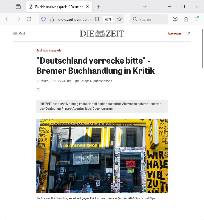 | Ich habe gestren repeoektve heute bis um 02:30 Uhr in der Früh Systeme konfiguriert und bin deshalb nach nicht mal 5 Stunden Schlaf erst nach 07:00 Uhr wachgeworden umd annwietrzuchen bis zimlch exakt um 14:00 Uhr und da war ich dann endlich soweit fertig mit den Sabotage bedingten umfagrichenren rbeiten zum Monatsanfang als sonst üblich. Dafür hab ich diese ACME - Bot SSL Sache noch fertigbekommen von dem Fax - Serversystem von dem ich berichtet hatte das ich Demonsttationszwecke- bei Gericht wegen maluafgbaut hate und mit umziehen musste als ich den Provider in Oseuropa whcslte wo es in letzter Zeit häufig Ausfälle gibt die eines meienr Backup - Systeme ( etwa dei http://193.19.133.9:8080 ) betreffen. Daher komme ich nach zeoStunden erschöpf-ungbdinger Ruhepause erst jetzt dazu kurzwas zu dem #Tatort Krimi vom Sonntag den 01. März 2026 zu schiben. Der fing später an, es gab eine Brennpunkt oder sowas sonder-sendung weil im Iran der Krieg ausgebrochen ist mit den USA. Als es dann losging bekam ich nur soviel mit daß es umien Frahradkurier ging der zur Polzeistation kam um ne Selbstanzgezu machen aber dann irgendwie wieder weg-gschickt wurde udn dann vor dem Gäde von einem Auto überfahren wurde,wohl mit Absichht. ICh dcheterst den Film habe ich schonmal gesehen weik es schonmal was gab mit Fahradkurieren und den EDV - Daten von denen anhand derer man sich Hinweise erhoffte auf die Täter. Schon damals ging es um irgendche "Scanner".